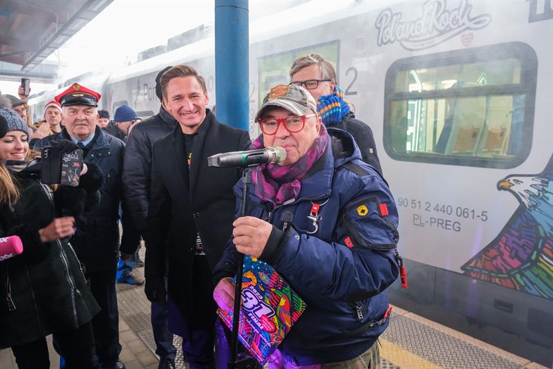 - W pociągu, który mówi o najpiękniejszym festiwalu świata, Festiwalu Pol'and'Rock, który tutaj gra i mam nadzieję będzie grać do końca świata im jeden dzień dłużej, w pociągu który tymi kolorami mówi, ze potrafimy się cudownie bawić, zrobimy letnią zadymę w środku zimy, a w lato będziemy jeszcze szczęśliwsi, a nasze decyzje dotyczące muzyki były jak najlepsze - mówił Jurek Owsiak. - A podczas festiwalu jedną z gwiazd na pewno będzie zespół Spin Doctors - zdradził.