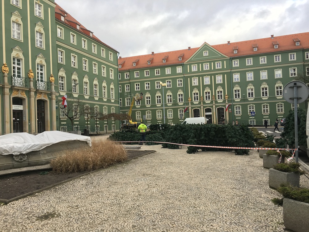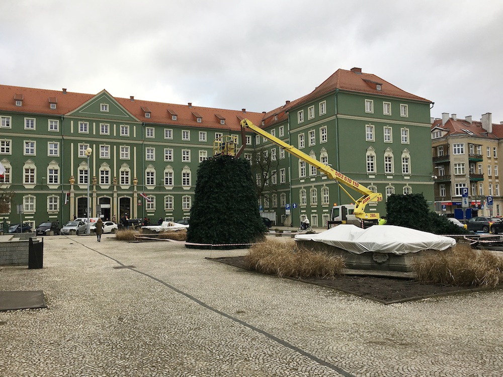 Przed Urzędem Miasta w Szczecinie nie ma już bożonarodzeniowej choinki. Powoli znikają także iluminacje zdobiące miejskie latarnie.