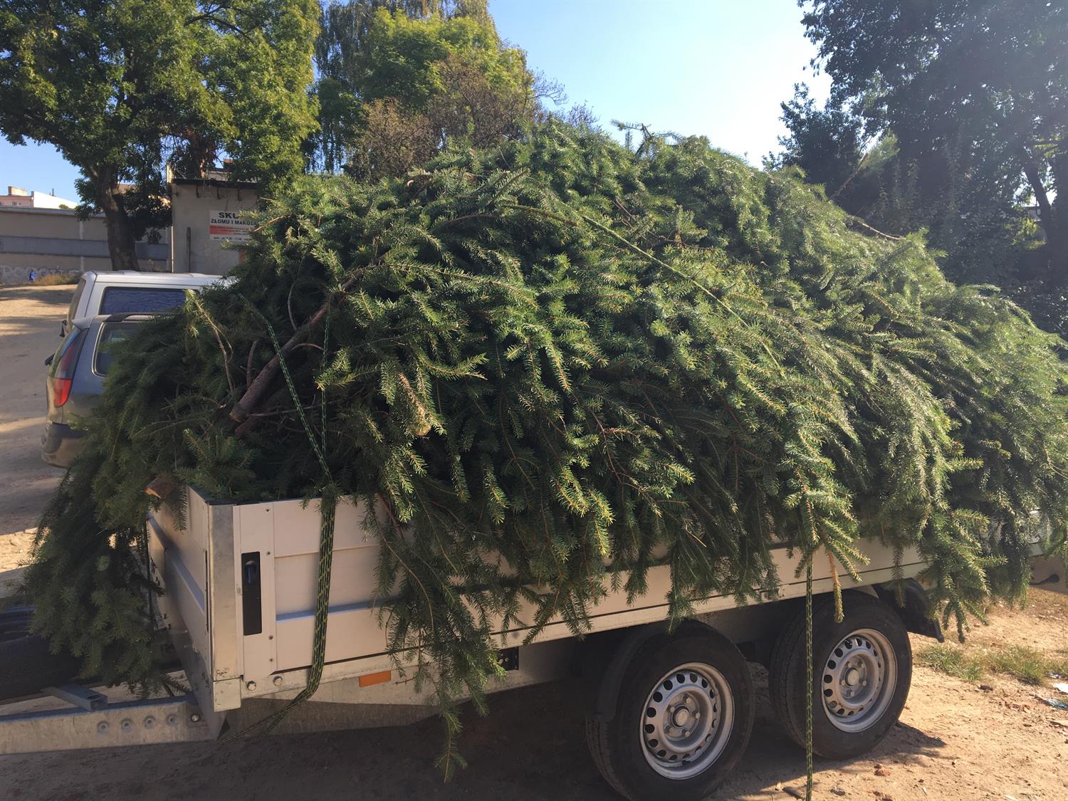 Taki widok może zmusić nas do popatrzenia w kalendarz. Nie, to jeszcze nie święta. Transport choinek przy ulicy Krasińskiego w Szczecinie z pewnością ma inne przeznaczenie. Jakie niestety nie wiemy.