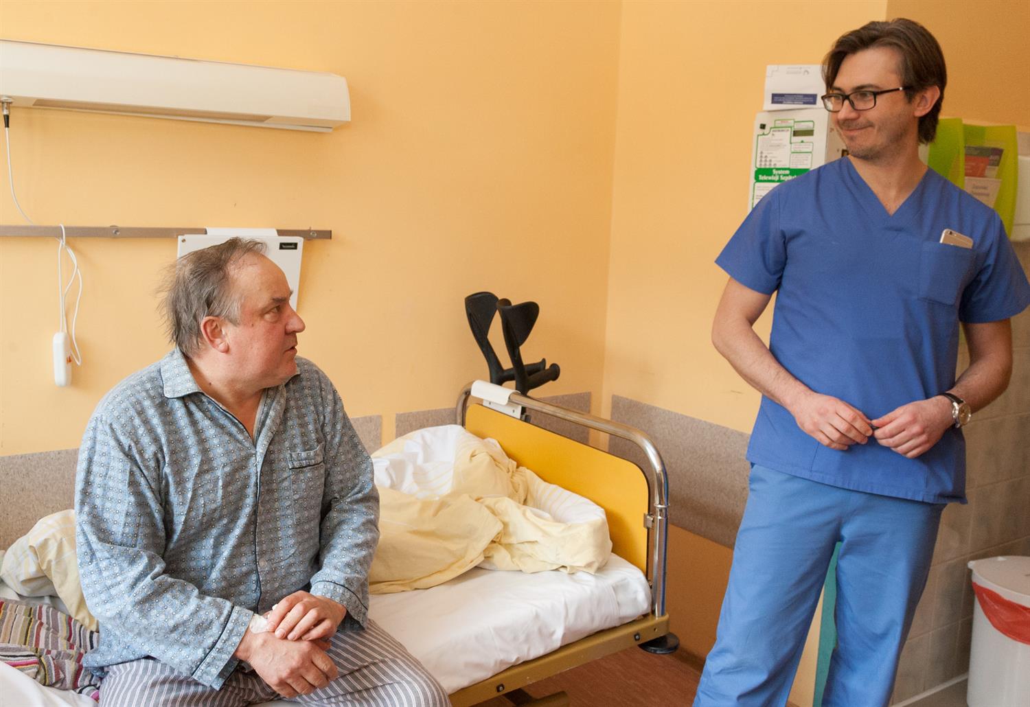 Na zdjęciu: Pan Józef już dzień po operacji informował dr Łukasza Terenowskiego, że niemal nie odczuwa dolegliwości bólowych.