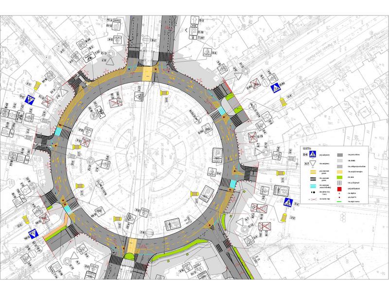 Wg przedstawionych rysunkow to pasy centralne będą również służyć do skrętu w prawo a nie tylko na wprost (w lewo nie wiem dokąd skręca się na rondzie?)