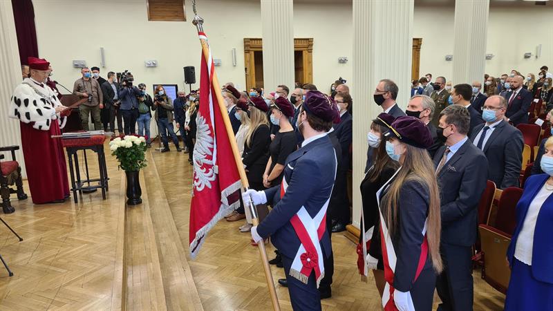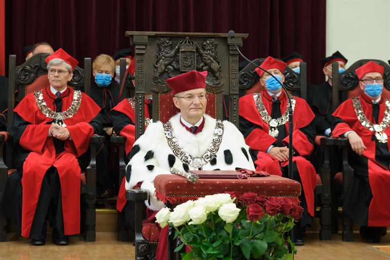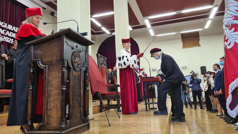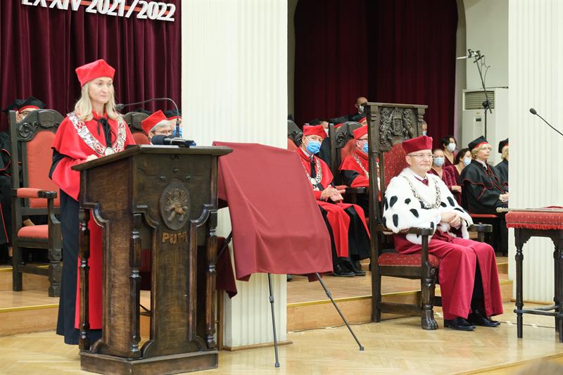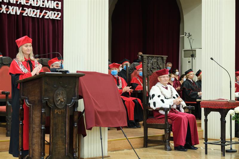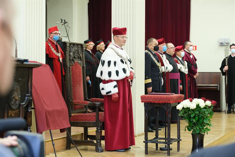 - W ostatnich latach awansowaliśmy w rankingach szkół wyższych - przypomniał. - W rankingu "Perspektyw" w roku 2020 cieszyliśmy się dziesiątą pozycją. Było to najwyższe miejsce w historii PUM. Aktualnie mamy wciąż dobrą, trzynastą pozycję. Przypomnę, że w 2016 roku rozpoczynaliśmy od pozycji trzydziestej drugiej. Pod względem efektywności naukowej w tym roku nasza uczelnia objęła zaszczytne pierwsze miejsce. Jesteśmy z tego wyjątkowo dumni, gdyż jednym z najważniejszych zadań uniwersytetu jest prowadzenie badań naukowych stanowiących koło zamachowe rozwoju kraju.