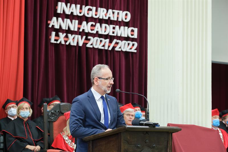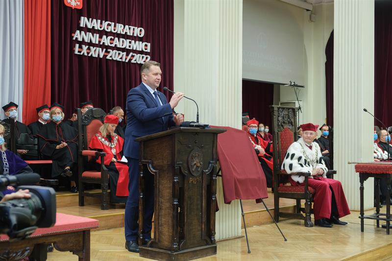 Minister Niedzielski stwierdził, że czas pandemii uświadomił wszystkim, jak istotne są wyzwania stojące przed polską służbą zdrowia. Podziękował szczecińskiej uczelni za włączenie się w walkę z pandemią - i za to, że w wydaniu PUM była to walka wysokiej jakości.