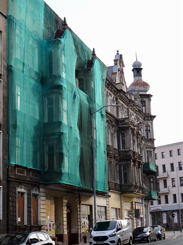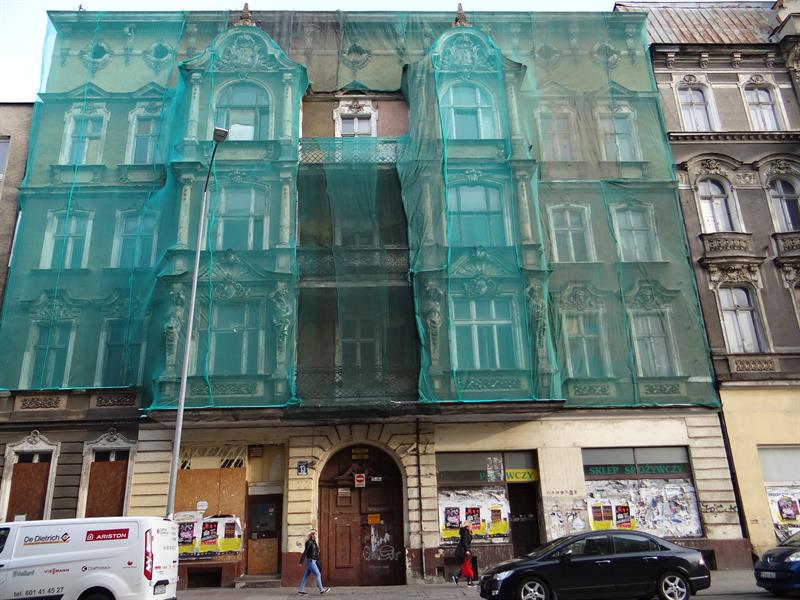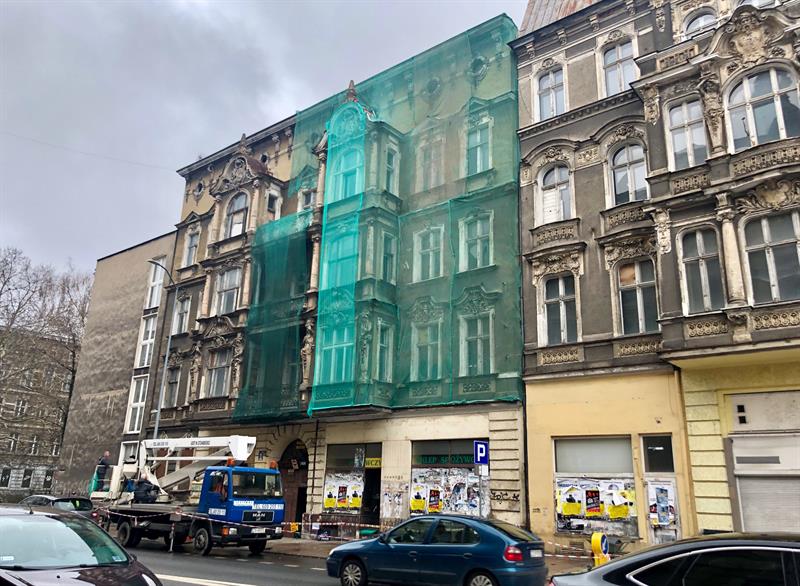 Wkrótce dodatkowe osiatkowanie zabezpieczające przed ewentualnie odpadającym tynkiem lub innymi elementami - tak jak na elewacji kamienicy przy ul. Edmunda Bałuki 12 - zamontowane mają być także na elewacji frontowej sąsiedniej kamienicy narożnej u zbiegu ulic Edmunda Bałuki i Śląskiej (o adresie ul. Edmunda Bałuki 12). ©℗