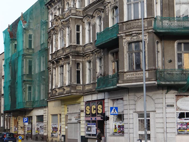 Nie są te nieruchomości w kwartale śródmiejskiej zabudowy nr 21 i nie tylko one z pewnością bombonierką, co mógłby sugerować wyblakły szyld w witrynie na parterze jednego z opuszczonych lokali użytkowych w narożnej zdegradowanej kamienicy o numerze 12 w jej części od ul. Śląskiej. W niej już jakiś czas temu osiatkowane zostały na dwóch piętrach balkony. W sąsiedniej kamienicy o numerze 13 do niedawna elewacja była osłonięta płachtami siatki tylko częściowo. Kilka dni temu powyżej parteru w całości została nią opakowana.
