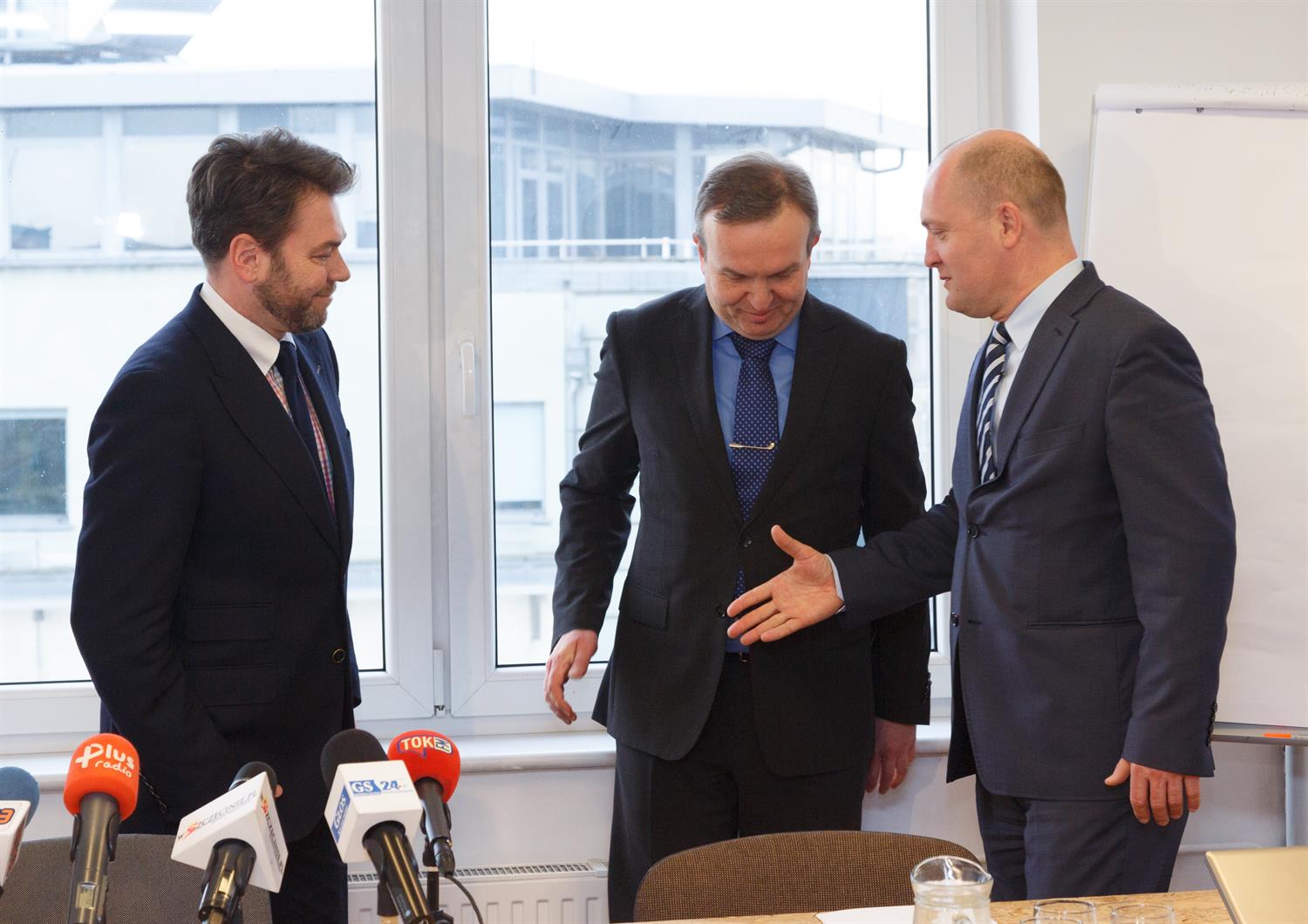 Na zdjęciu: W czwartek (23 listopada) prezydent Piotr Krzystek wraz ze współpracownikami - Pawłem Szczyrskim, dyrektorem Biura ds. Organizacji Pozarządowych oraz Danielem Wacinkiewiczem, swym zastępcą - ogłosił wyniki piątej edycji Szczecińskiego Budżetu Obywatelskiego.