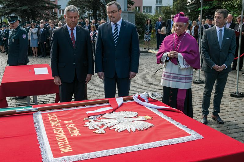 Uroczystości towarzyszyły poczty sztandarowe reprezentujące policję służbę i straż miejską. Po podniesieniu flagi państwowej na maszt oraz odegraniu hymnu państwowego głos zabrał Jarosław Grzelak, dyrektor IAS w Szczecinie.