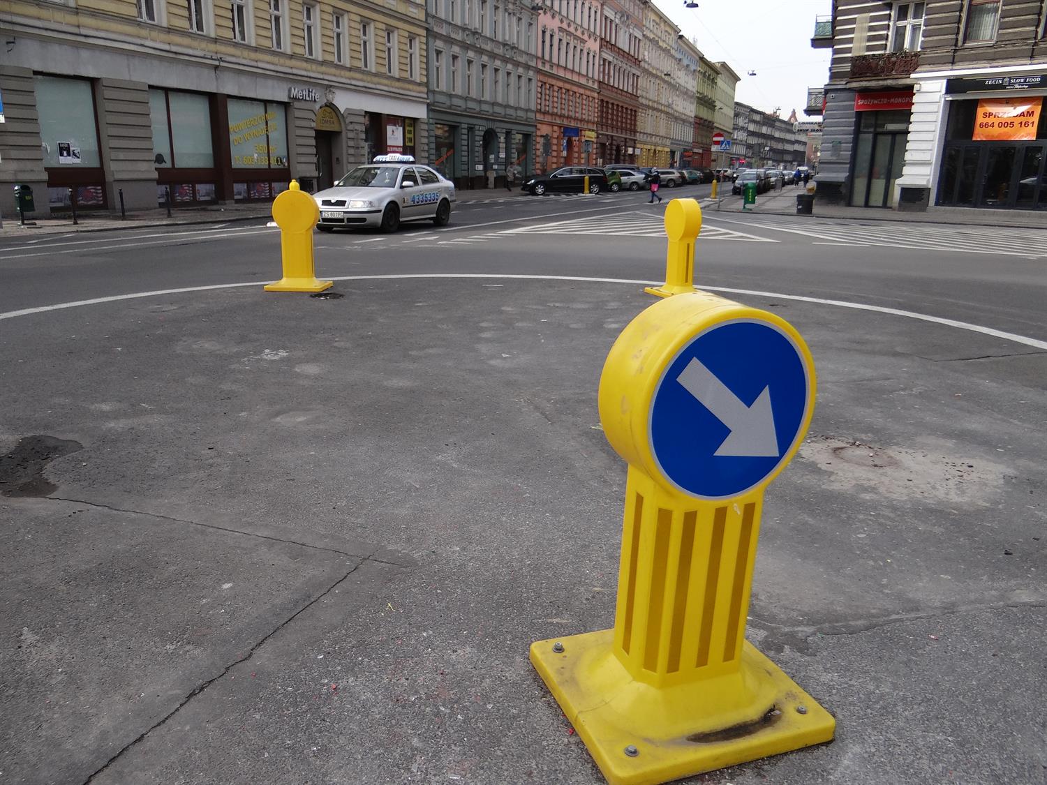 musisz się bardziej postarać z tym myśleniem.. najpierw zmieniono tylko organizację ruchu, co nie jest jakimś dużym wydatkiem w porównaniu do przebudowy.. tak się robi często na całym świecie, że maluje się farbą coś, żeby zobaczyć, czy zadziała, a dopiero potem idzie się w kosztowniejszą przebudowę..