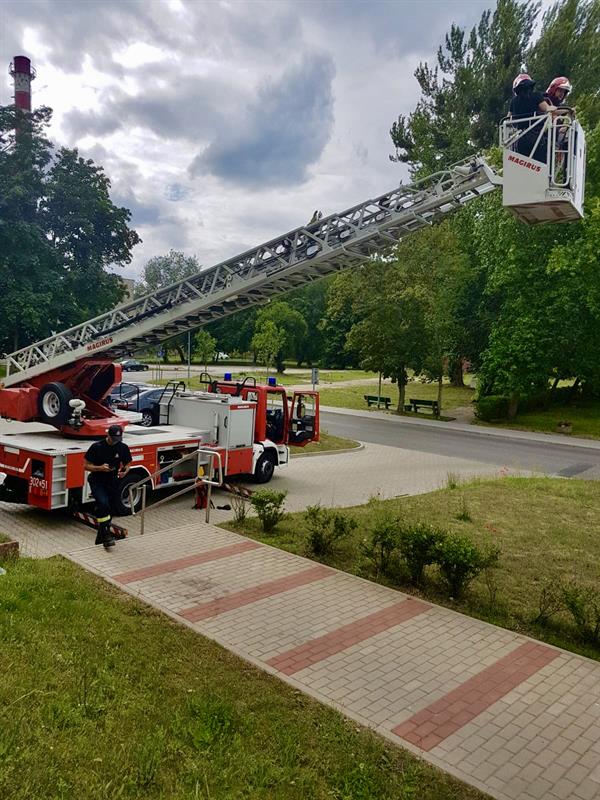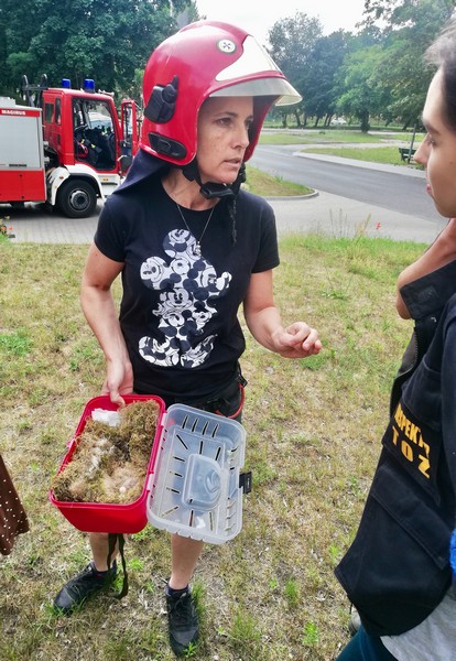 - W porozumieniu z niezawodną w takich sytuacjach Marzeną Białowolską oraz przedstawicielami Towarzystwa Opieki nad Zwierzętami podjęto decyzję o ściągnięcie na miejsce straży pożarnej z wozem wyposażonym w wysięgnik - relacjonuje rzeczniczka. - Na jego ramieniu pani Marzena wraz ze strażakiem z OSP wyniesieni zostali na wysokość blisko 25 metrów. Z opuszczonej budki lęgowej rzeczywiście wyciągnęli trzy jajeczka.