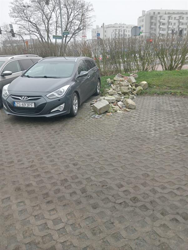 Na parkingu u zbiegu al. Bohaterów Warszawy i ul. Mieszka I, tuż przy terenie Rodzinnych Ogrodów Działkowych, ktoś zaparkował… gruz. Najwyraźniej rozbiórkowy odpad zajmuje jedno z miejsc parkingowych, zalega na trawniku.