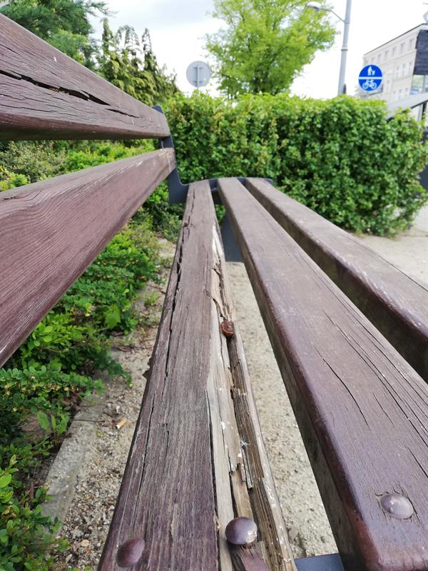 Stan ławki wskazuje raczej na bardzo słabej jakości drewno, które nie wytrzymało warunków atmosferycznych.