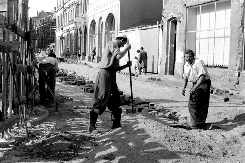 Prezentowane zdjęcia wykonano więc około roku 1960-61. Widoczni robotnicy to prawdopodobnie więźniowie wykorzystywani wówczas do pracy na różnego rodzaju obiektach.