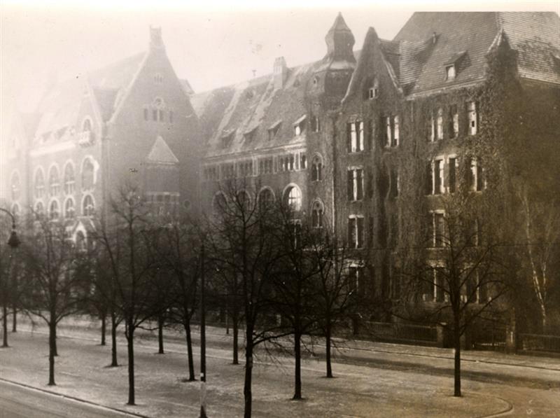 Kolejną szkołą jest słynne LO nr 1. Zajrzyjmy do historii szkoły umieszczonej na stronie internetowej: jej projekt zawdzięczamy architektowi Wilhelmowi Meyer-Schwartau. Kamień węgielny położono w 1900 roku. Do budowy wykorzystano ciosy z piaskowca śląskiego. Dzięki nim stworzono monumentalny i majestatyczny klimat budynku. W narożnikach zastosowano ryzality, którymi ozdabiano renesansowe budowle pałacowe. Główne wejście zostało wykończone portalem zamykanym archiwoltami, nad którym zaprojektowano balkon. Na łuku wyrzeźbiono napis: „Anno Domini 1903” – odnosił się do roku ukończenia budowy szkoły. W czasach wojennych budynek pełnił funkcję polowego szpitala wojskowego. Szkoła najprawdopodobniej przestaje funkcjonować dopiero w 1943 roku.