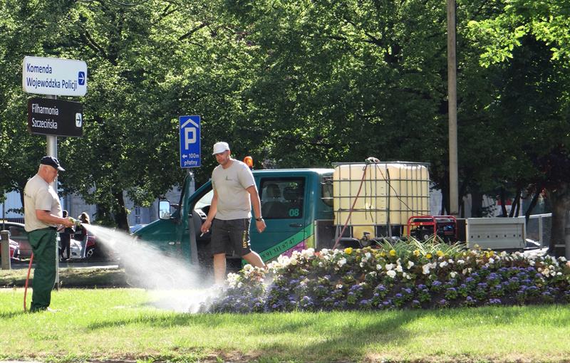 Nie tylko na pl. Rodła przez żar z nieba wszystko usycha. Dlatego zapytaliśmy w szczecińskim magistracie: czy zieleń miejska jest podlewana w upały: w szczególności nowe nasadzenia drzew, krzewów, roślin rabatowych? Rzecz jest w obowiązku miejskich służb, czy wykonawców, zajmujących się utrzymaniem i pielęgnacją zieleni w poszczególnych rejonach miasta?