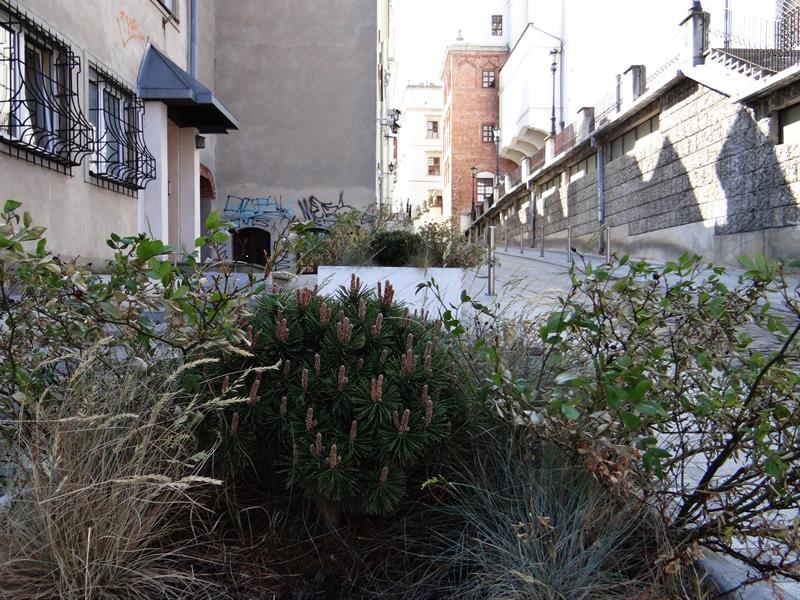 Pracownicy firmy Thomas podlewają rabatki na skwerze Kaczyńskiego, przy Bramie Królewskiej. W tym samym czasie usychają róże i trawy w kwietnikach przy ul. Kuśnierskiej. Podobnie jak buki płaczące (odmiana ’Purple Fountain’) na pl. Rodła.