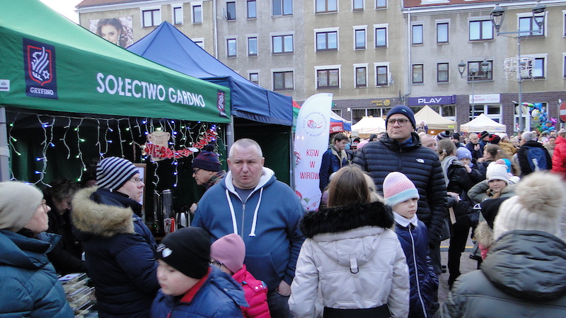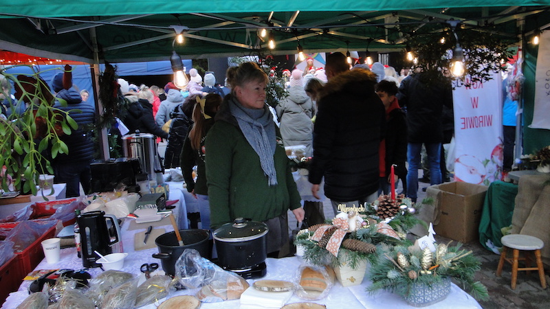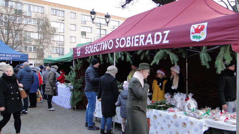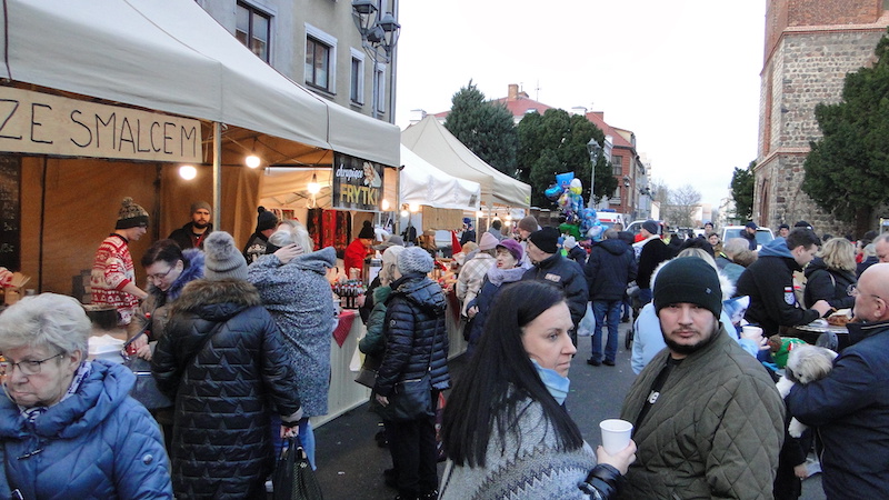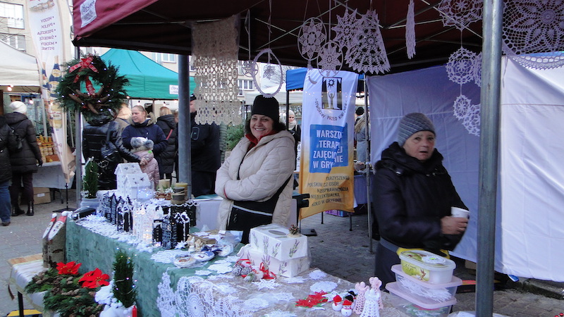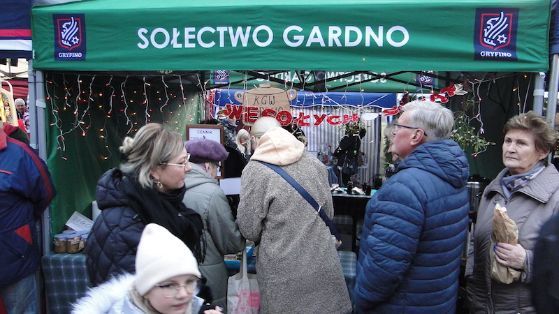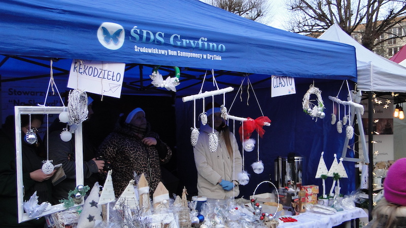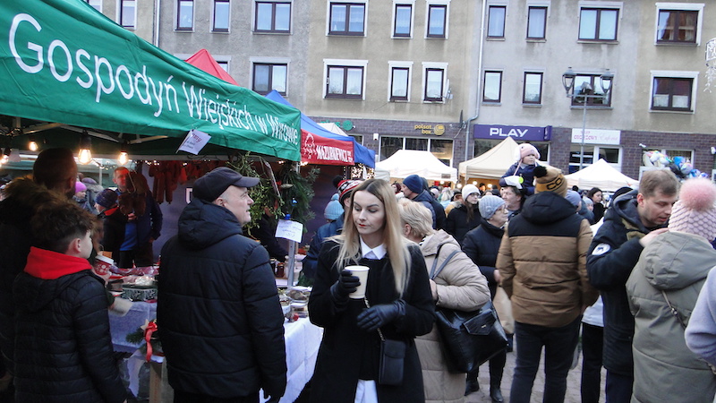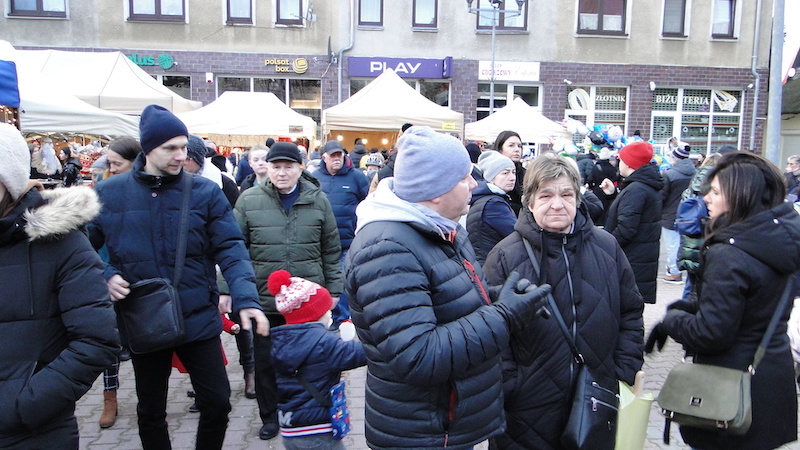 Świątecznie, barwnie, wesoło, smakowicie – tak było na dzisiejszym (w niedzielę 17 grudnia) jarmarku tradycyjnie organizowanym przed Bożym Narodzeniem na placu Barnima w Gryfinie. Wydarzenie na dobre wpisało się w przedświąteczny klimat miasta. Na mieszkańców gminy, którzy tłumnie wzięli udział w jarmarku, czekały liczne atrakcje. Kramy i stragany mieniły się kolorami i różnorodnymi wyrobami. Było rękodzieło, świąteczne stroiki, upominki, ozdoby i dekoracje. Tu i ówdzie zieleniła się jemioła, wszak „bez jemioły roczek goły”, a jej usytuowanie nad wigilijnym stołem ma zapewnić domownikom szczęście i dostatek. Oferowano miody, desery, pierniczki, faworki i inne pyszne wypieki, pierogi z kapustą i grzybami, wyroby mięsne, bigos, sery, pasztety, domowe przetwory z warzyw i owoców oraz wiele innych produktów. Można też było posilić się na miejscu i wypić gorącą kawę lub aromatyczną herbatę. Wydarzeniu towarzyszyły artystyczne występy, wspólne kolędowanie, a z najmłodszymi spotkał się Mikołaj i towarzyszący mu pomocnicy, zapewniając uczestnikom świetną zabawę. Jarmark odwiedzili włodarze gryfińskiej gminy, którzy przekazali mieszkańcom świąteczne życzenia.