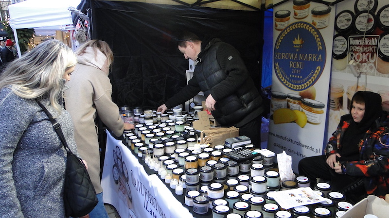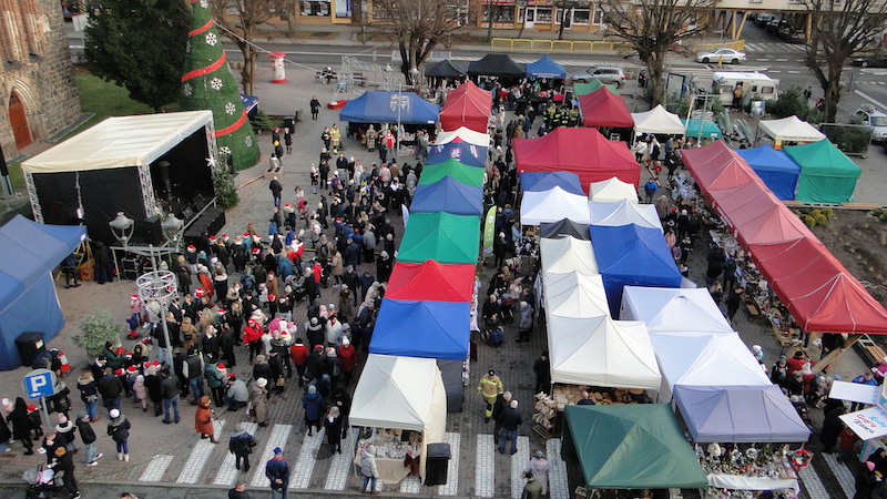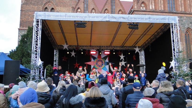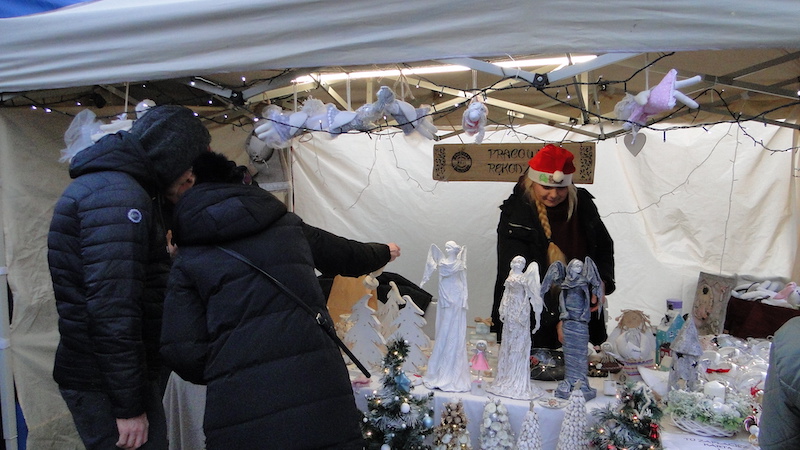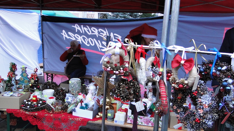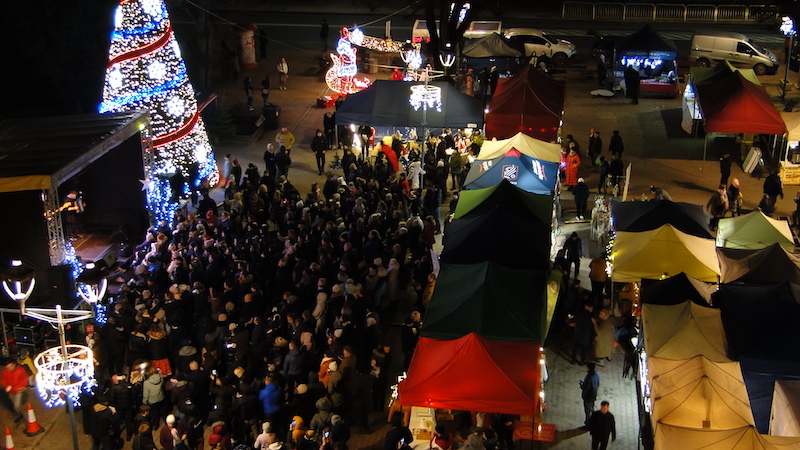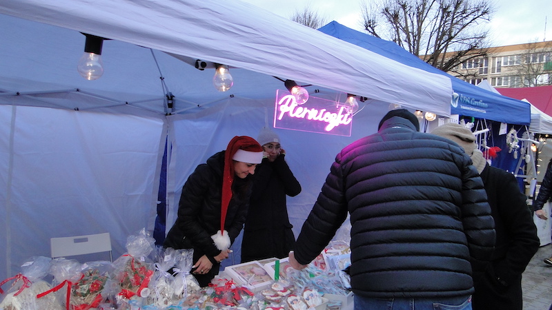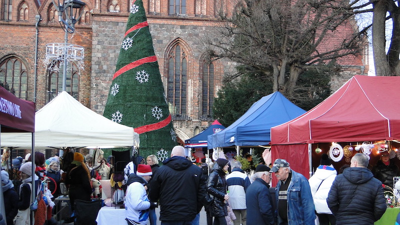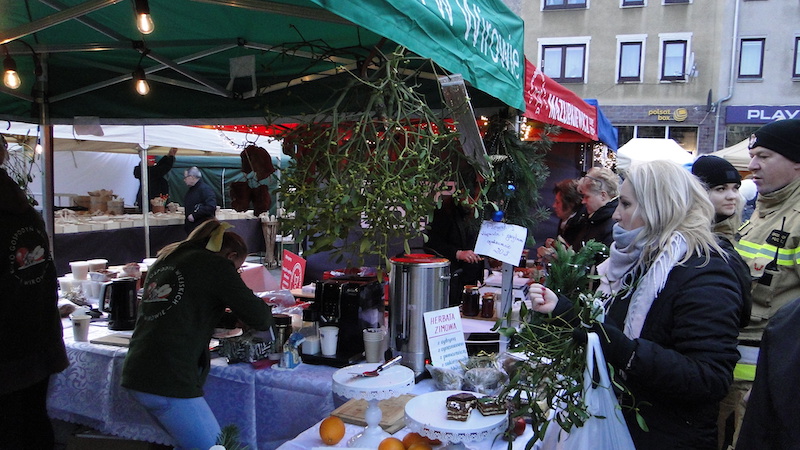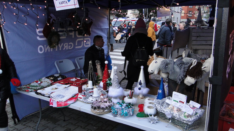 Świątecznie, barwnie, wesoło, smakowicie – tak było na dzisiejszym (w niedzielę 17 grudnia) jarmarku tradycyjnie organizowanym przed Bożym Narodzeniem na placu Barnima w Gryfinie. Wydarzenie na dobre wpisało się w przedświąteczny klimat miasta. Na mieszkańców gminy, którzy tłumnie wzięli udział w jarmarku, czekały liczne atrakcje. Kramy i stragany mieniły się kolorami i różnorodnymi wyrobami. Było rękodzieło, świąteczne stroiki, upominki, ozdoby i dekoracje. Tu i ówdzie zieleniła się jemioła, wszak „bez jemioły roczek goły”, a jej usytuowanie nad wigilijnym stołem ma zapewnić domownikom szczęście i dostatek. Oferowano miody, desery, pierniczki, faworki i inne pyszne wypieki, pierogi z kapustą i grzybami, wyroby mięsne, bigos, sery, pasztety, domowe przetwory z warzyw i owoców oraz wiele innych produktów. Można też było posilić się na miejscu i wypić gorącą kawę lub aromatyczną herbatę. Wydarzeniu towarzyszyły artystyczne występy, wspólne kolędowanie, a z najmłodszymi spotkał się Mikołaj i towarzyszący mu pomocnicy, zapewniając uczestnikom świetną zabawę. Jarmark odwiedzili włodarze gryfińskiej gminy, którzy przekazali mieszkańcom świąteczne życzenia.