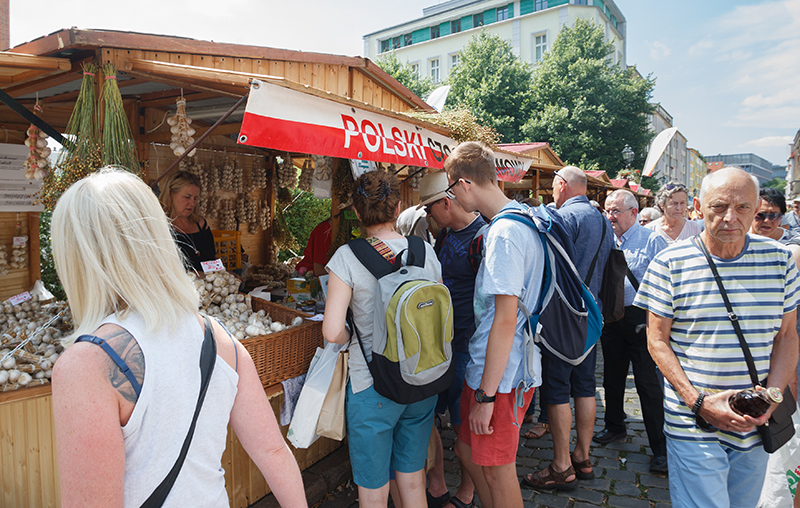 Na stoiskach przy szczecińskiej katedrze kuszą miody, konfitury, soki, wina, chleby, syropy, oleje, wypieki, sery, pierogi, wędliny. Sprzedawcy zachwalają swoje wyroby i namawiają do spróbowania, a klienci bardzo chętnie korzystają. Oprócz regionalnych przysmaków, są naturalne kosmetyki, sporo jest artystycznego rękodzieła, dekoracji, ceramiki, ubrania, są wyroby ze skóry. Na miejscu można zjeść pierogi, grillowane sery z żurawiną, kluski ziemniaczane z kapustą, golonkę, pajdę chleba ze smalcem albo masłem czosnkowym, racuchy, chłodnik z botwinki. Można wypić lemoniadę z pokrzywy albo czarnego bzu serwowaną wraz z innymi przysmakami choćby przez gospodarstwo państwa Jagerów z Radziszewa, są lody, gofry, desery. Korzystającym z gastronomicznej oferty przyśpiewują ludowe kapele.
