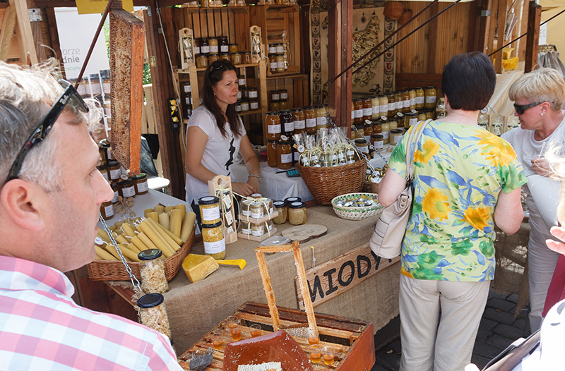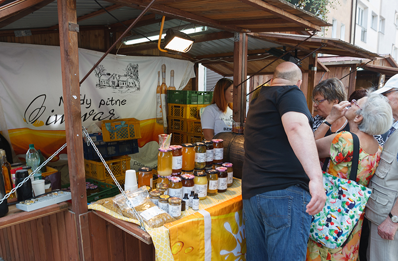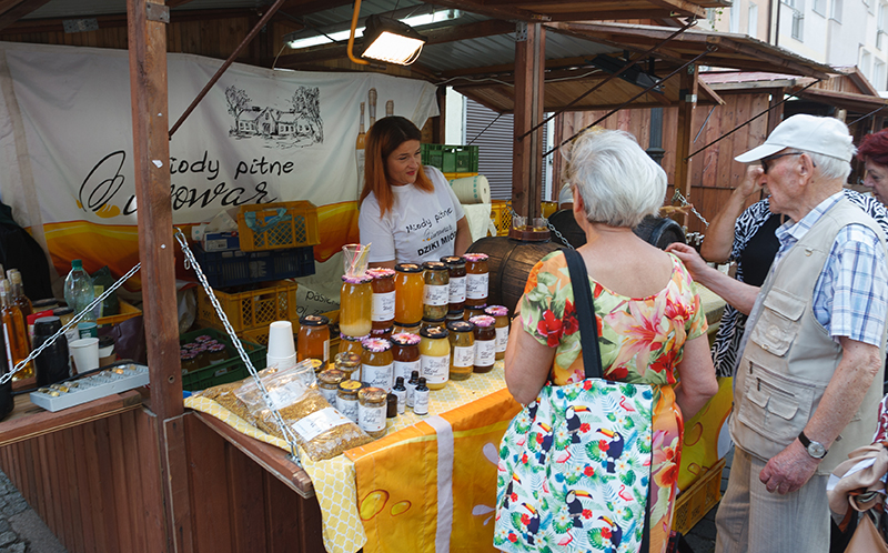 W pobliżu kremowe rzepakowe miody (m.in. ze smakiem piernikowym albo różanym) sprzedaje Konrad Fujarski. Rodzina Fujarskich z bogatą słodką ofertą jest tu obecna co roku, bo klienci wracają i zachwalają. Stoisko ma też Sklep Jakubowy ze Szczecina, a na nim wyroby koła gospodyń wiejskich z Korytowa – pierogi, kotlety szarpane, kotlety z marchewki albo kalafiora, jarskie pasztety. Nowością są sery alpejskie, np. z ziołami Baby Jagi. Radykołki, czyli sery owczo- krowie z gór, podawane na ciepło z żurawiną, serwuje na jarmarku Bacówka na Hali Majerz w Pieninach.