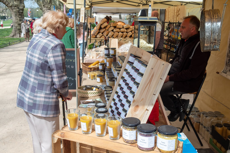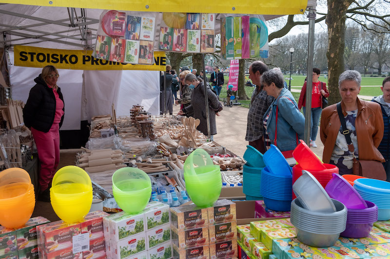Można tu znaleźć „Skarb Templariuszy", Kamienicę w lesie, ubrać się choćby u Melki, a dom wyposażyć m.in. w nastrojowe i pachnące świece. Na smakoszy czekają także różnorodne sery, wędliny, chleby, a też mnóstwo słodyczy - od tureckich baklaw po staropolskie sękacze. Stoiska firm regionalnych, oferujące np. słoiki miodów oraz kiszonek, przeplatają się z wyrobami rękodzielników. Jest też spora oferta ogrodnicza do domu, na balkon i ogrodu. Atrakcji nie brakuje także dla najmłodszych, na których czekają przeróżne zabawki, dmuchane zamki, przytulanki, barwne balony, nieśmiertelna wata cukrowa, warsztat malowania buziek i zaplatania warkoczy, a dostępna jest nawet paleta sztucznych tatuaży.