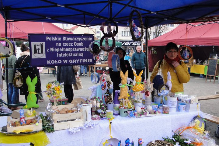 Zaroiło się w sobotę (9 kwietnia) na placu Barnima w Gryfinie od stoisk z przeróżnymi artykułami związanymi z wielkanocną tradycją.