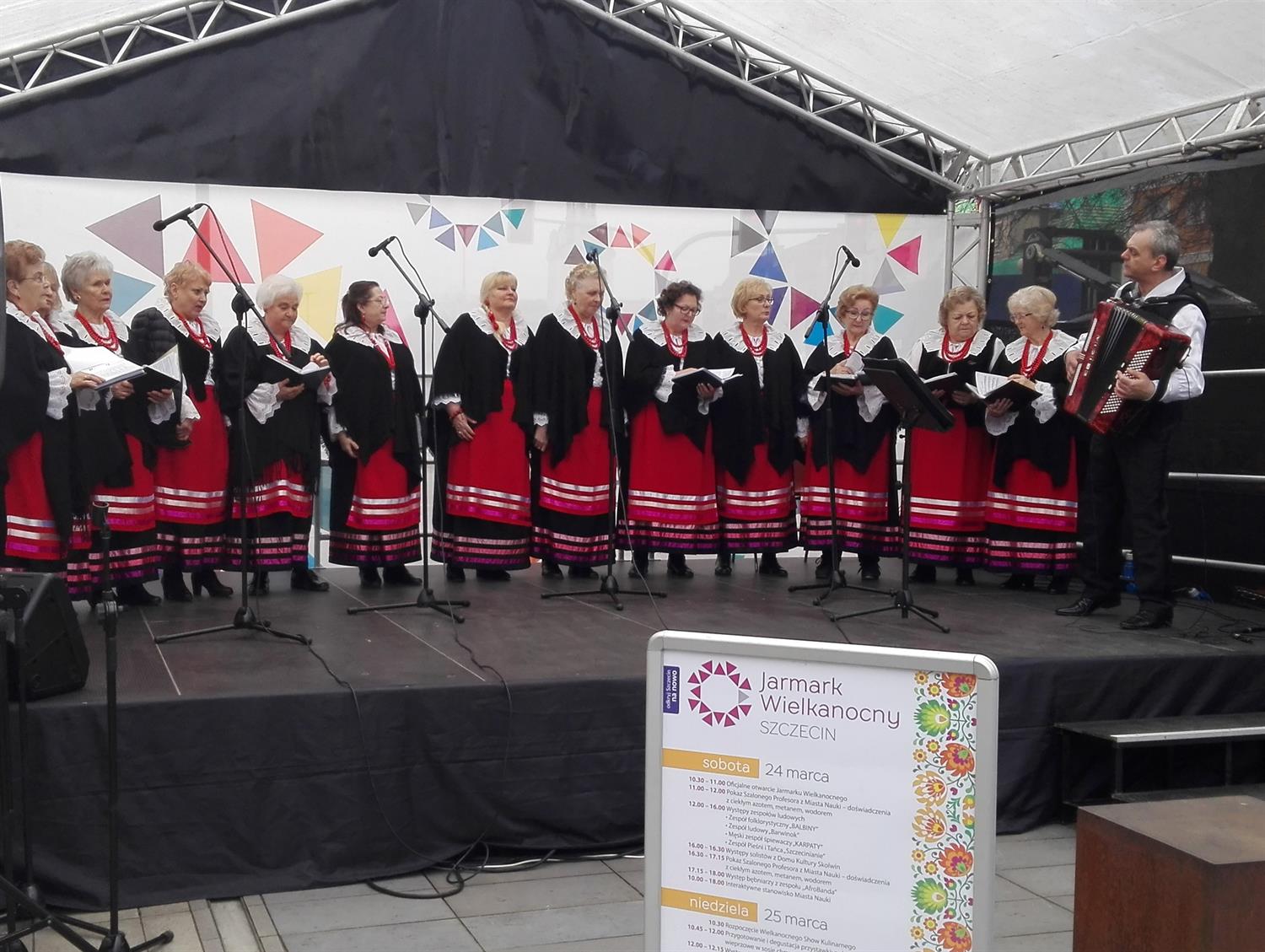 Jednak na odwiedzających jarmark największe wrażenie robią występy sceniczne zespołów folklorystycznych: „Balbin", „Barwinoka" czy genialnego męskiego zespołu śpiewaczego „Karpaty". Kto jeszcze na szczeciński Jarmark Wielkanocny w d. alei kwiatowej nie dotarł, ten ma szansę jeszcze posłuchać popisów zespołu pieśni i tańca „Szczecinianie", bębniarzy oraz solistów z Domu Kultury Słowianin.