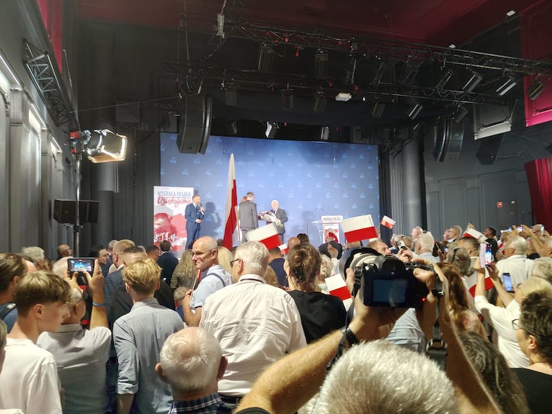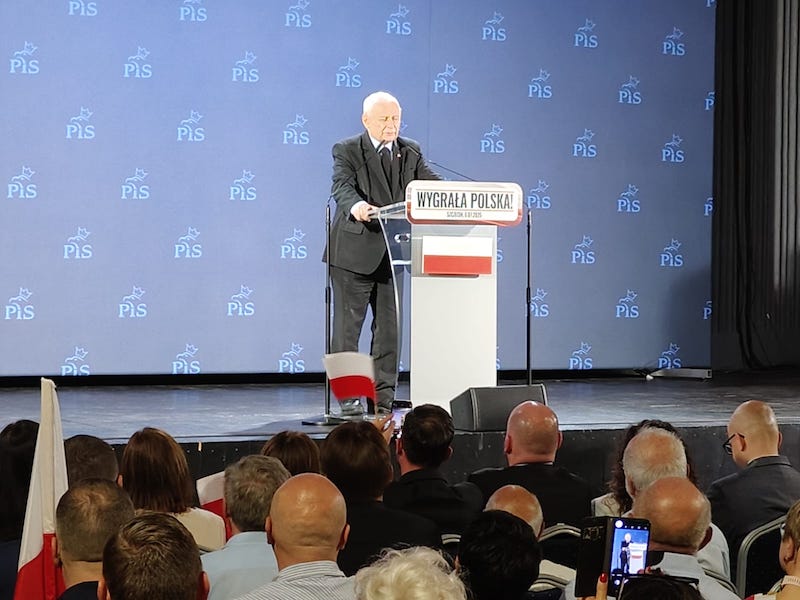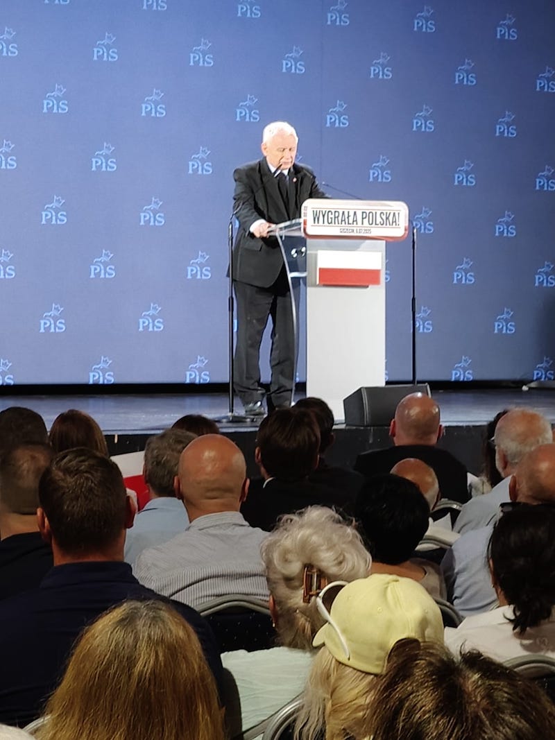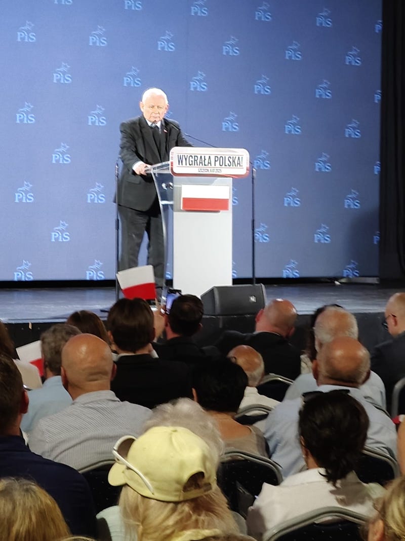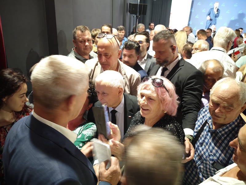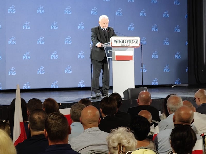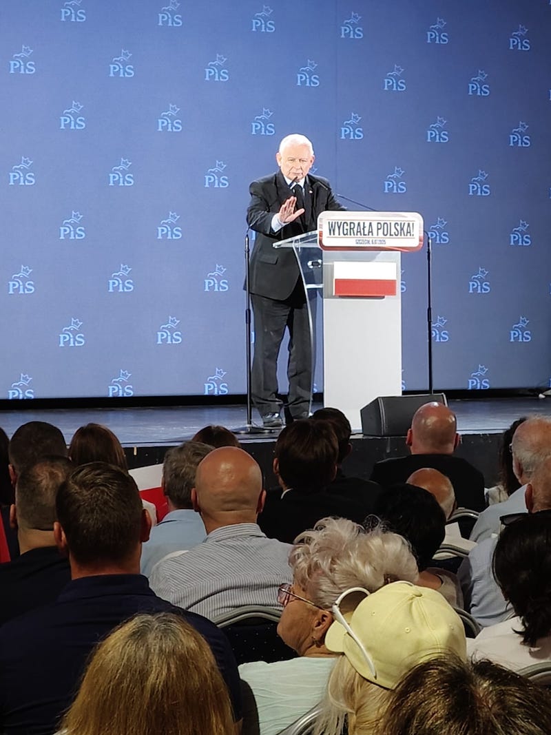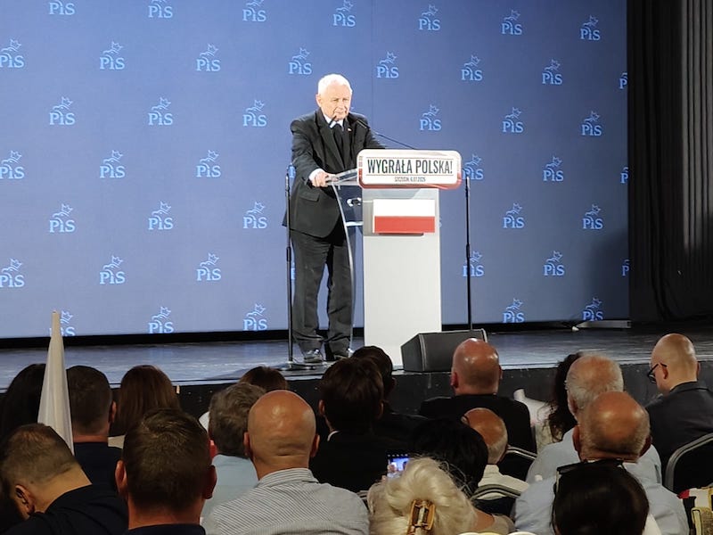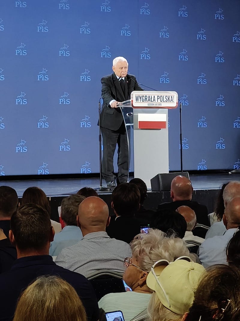 Prezes Jarosław Kaczyński spotkał się ze swoimi zwolennikami (6 lipca) w niewielkim szczecińskim klubie "Nowa Dekadencja". Sala była przepełniona. Tłum przyjął go owacyjnie. Przemówienie prezesa PiS kilkakrotnie przerywano okrzykami: "Jarosław" oraz " tu jest Polska".