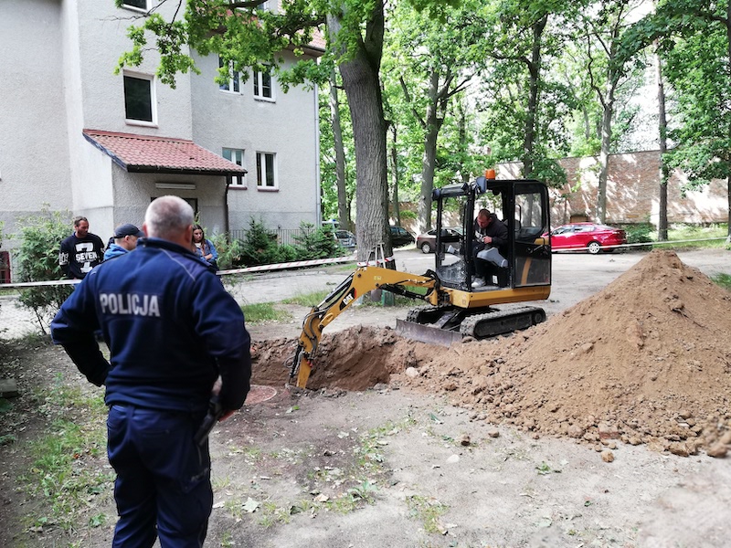Na początku lipca ub. roku we wskazanym miejscu zaczęto szukać zwłok. Kiedy dół kopany przez koparkę osiągnął głębokość prawie dwóch metrów, rodzina zaginionego Andrzeja (druga nie uczestniczy w poszukiwaniach) zauważyła kawałek materiału. W chwili gdy operator wykopał drugą łyżkę piachu, to ukazały się w niej kości. W tym momencie matka poszukiwanego doznała szoku. Z pomocą pośpieszyli jej ratownicy medyczni. Prace przerwano w oczekiwaniu na prokuratora, który przybył na miejsce.