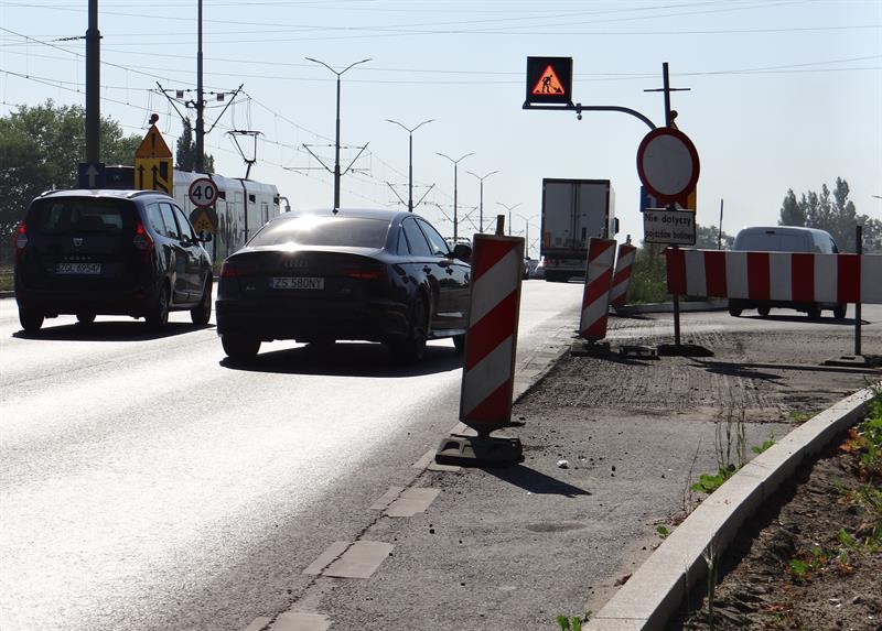 To dodatkowe zwężenie dotyczy także odcinka pasa jezdni z torowiskiem na moście, na którym rozłożone zostały kable systemu sterowania ruchem tramwajów na przesuniętym bliżej niego wahadle w ul. Energetyków. Kiedy do tej ostatniej kierowcy już dotrą muszą też zwolnić, bo tam z kolei, aż za rondo Portowców, a dokładniej do estakad Trasy Zamkowej drogowcy rozpoczęli wylewać nowy asfalt jednocześnie na obu nitkach jezdni.