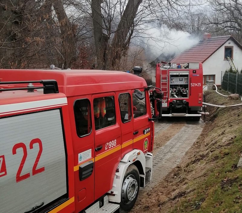 W akcji gaśniczej brały udział zastępy zawodowej i ochotniczej straży pożarnej.