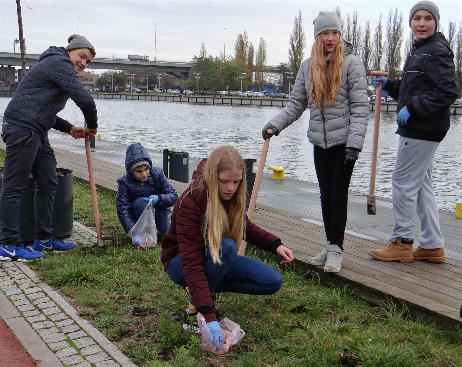 Tym razem nad Odrą stawiła się nad wyraz liczna ekipa uczniów z dwóch szczecińskich Gimnazjów nr 34 i 9 wspólnie z grupą pracowników Szczecińskiej Energetyki Cieplnej w chłodne listopadowe przedpołudnie ochoczo zabrała się do sadzenia tym razem 4250 cebul krokusów. Wszystko poszło wyjątkowo sprawnie. A zajęciu młodzieży z zaciekawieniem przypatrywali się m.in. liczni w tym rejonie każdego dnia amatorzy łowienia ryb na wędkę.