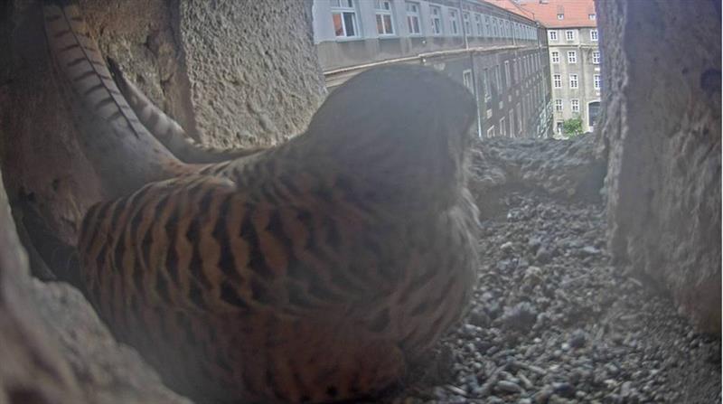 Życie rodzinne pary pustułek, które gniazdują na wewnętrznym dziedzińcu szczecińskiego magistratu. Pasjonujący przekaz online 24 godziny na dobę. Fot. Centrum Informacji Miasta