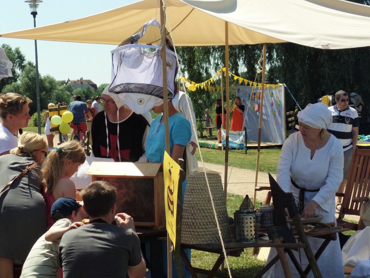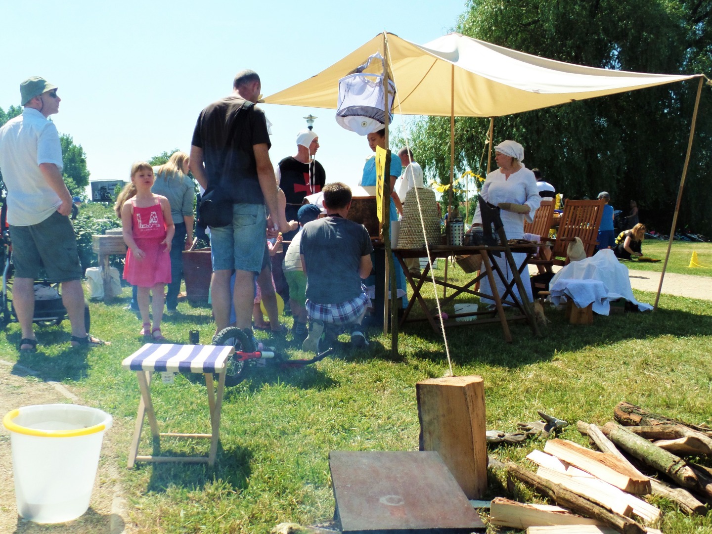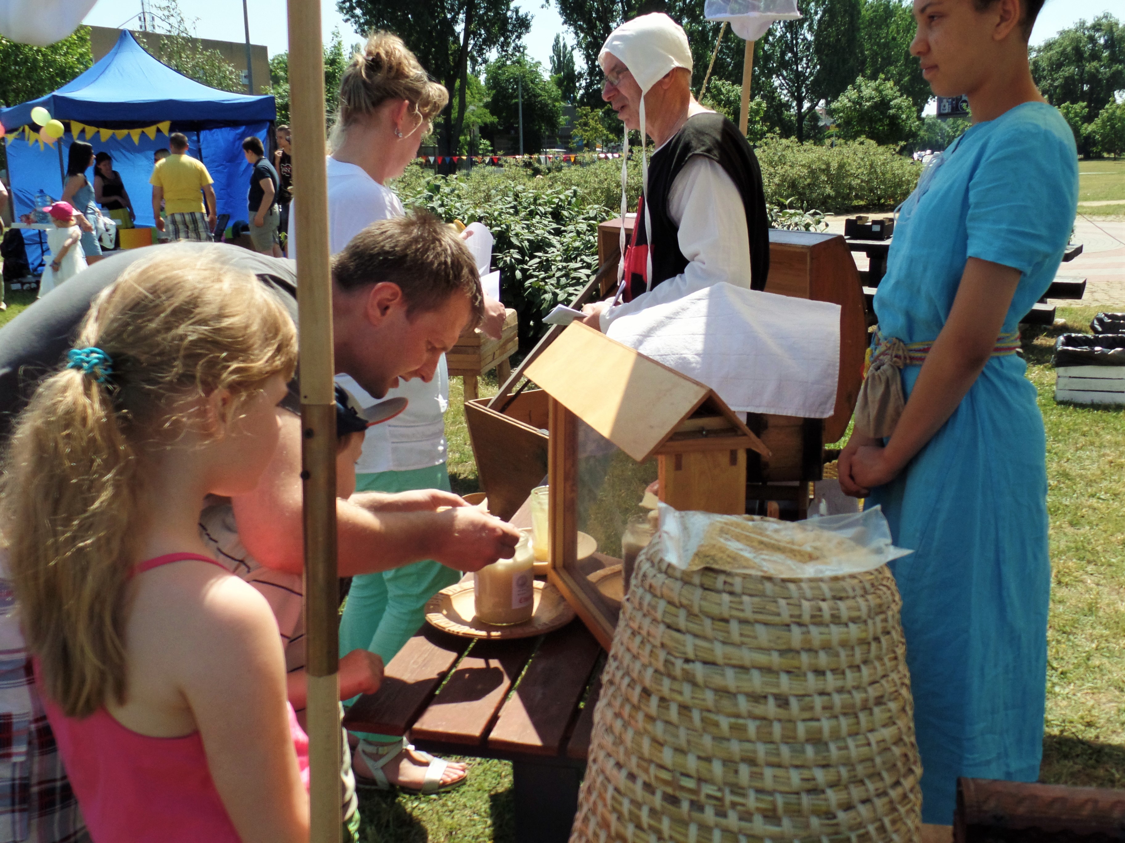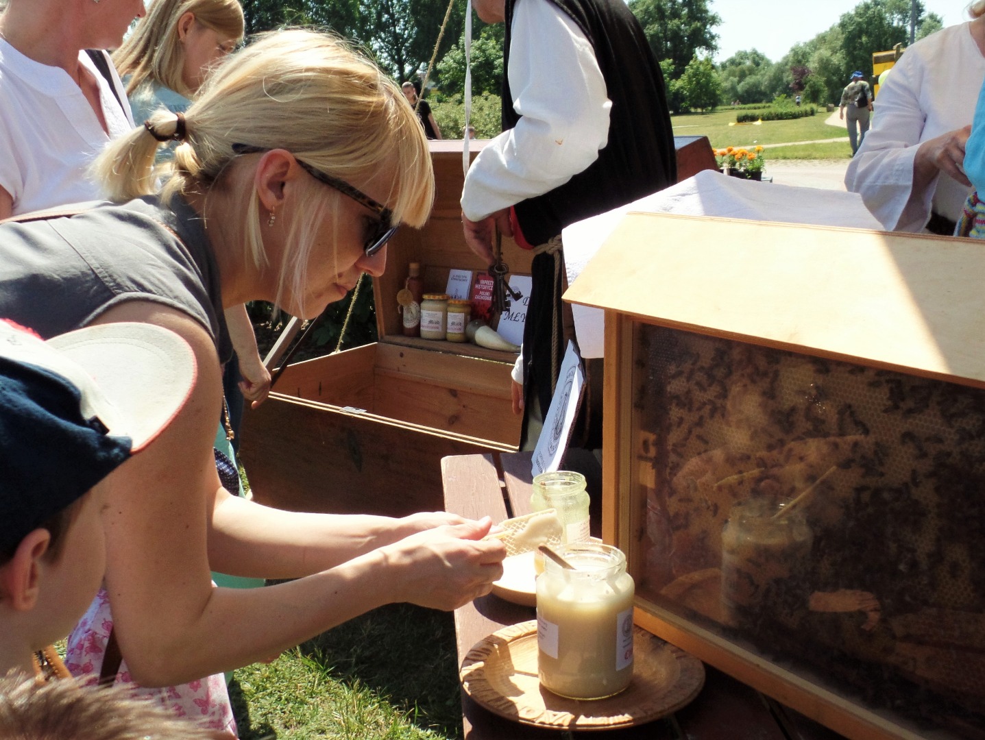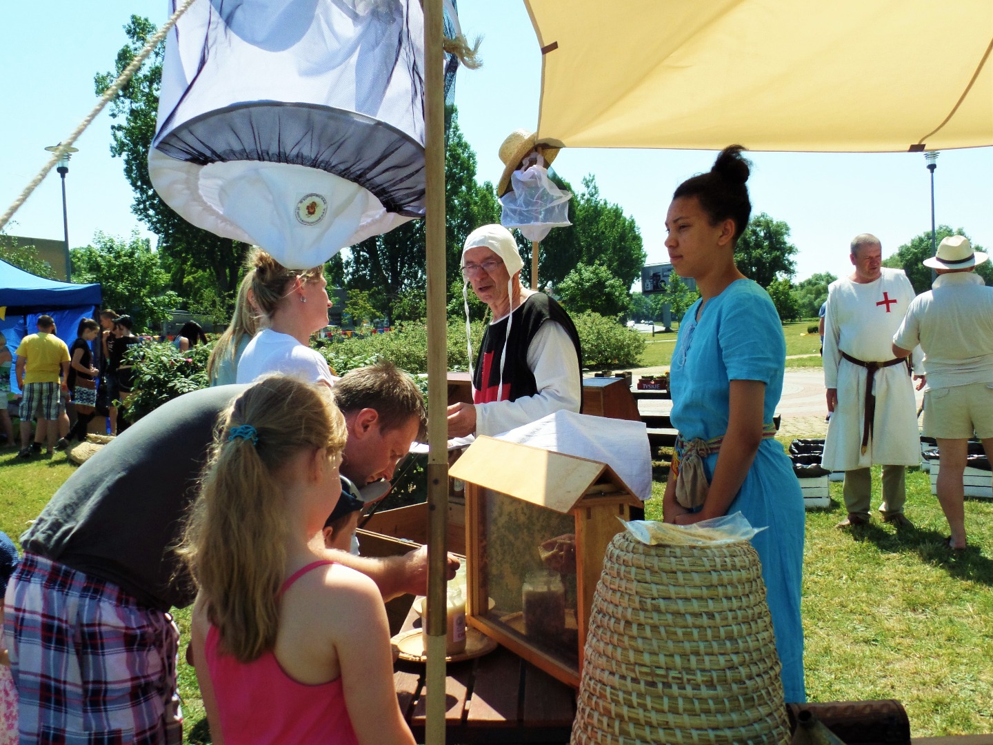 Nie tylko na najmłodszych czeka sporo atrakcji. Można wziąć udział w sadzeniu kwiatów przyjaznych pszczołom i innym zapylaczom, podglądać życie tych owadów (bezpiecznie, bo zza szyby), a na dodatek kosztować ich miodu. Można też posłuchać opowieści templariusza o wypieku chleba i spróbować własnoręcznie wypieczonych podpłomyków z miodem. Dla bardziej wytrwałych są zarówno popisy śpiewacze, jak też ognisko z pieczeniem smakołyków.
