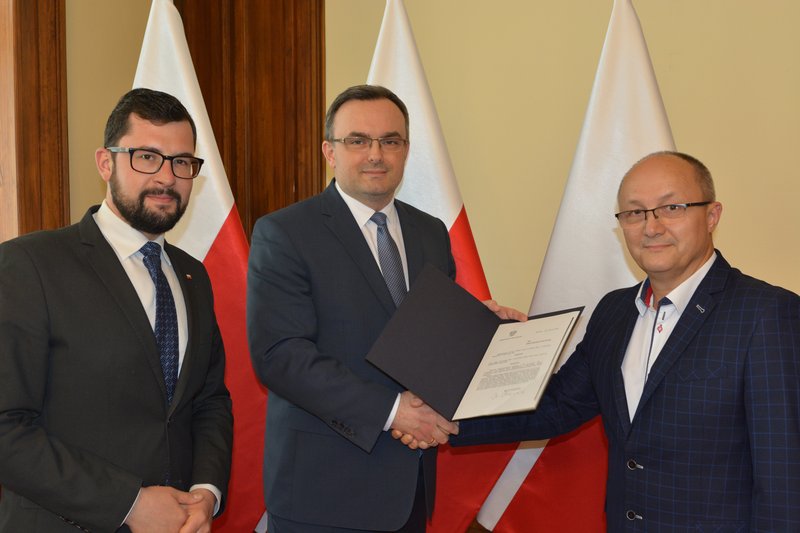 Na zdjęciu (od prawej): Jerzy Sołtysiak, wojewoda Tomasz Hinc i wicewojewoda Marek Subocz.