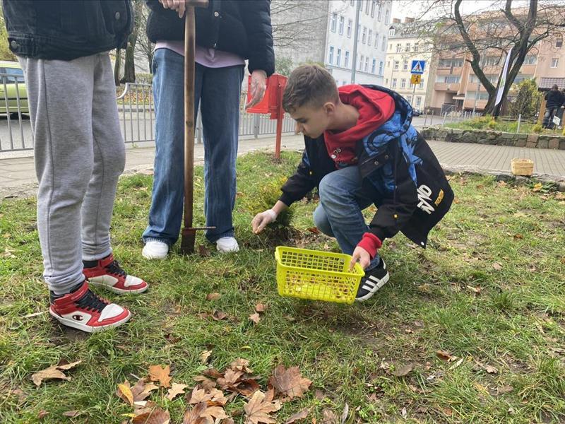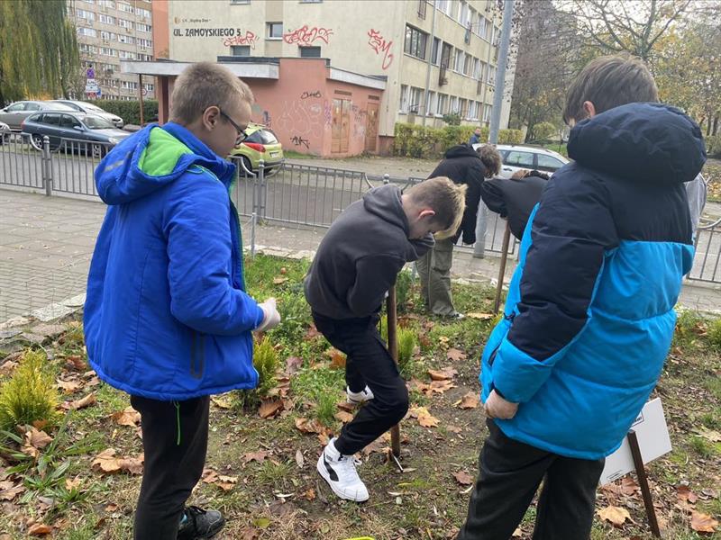 Uczniowie w sadzeniu krokusów wzięli udział w ramach lekcji wychowawczej, która - siłą rzeczy - stała się dla nich praktyczną lekcją obywatelską.