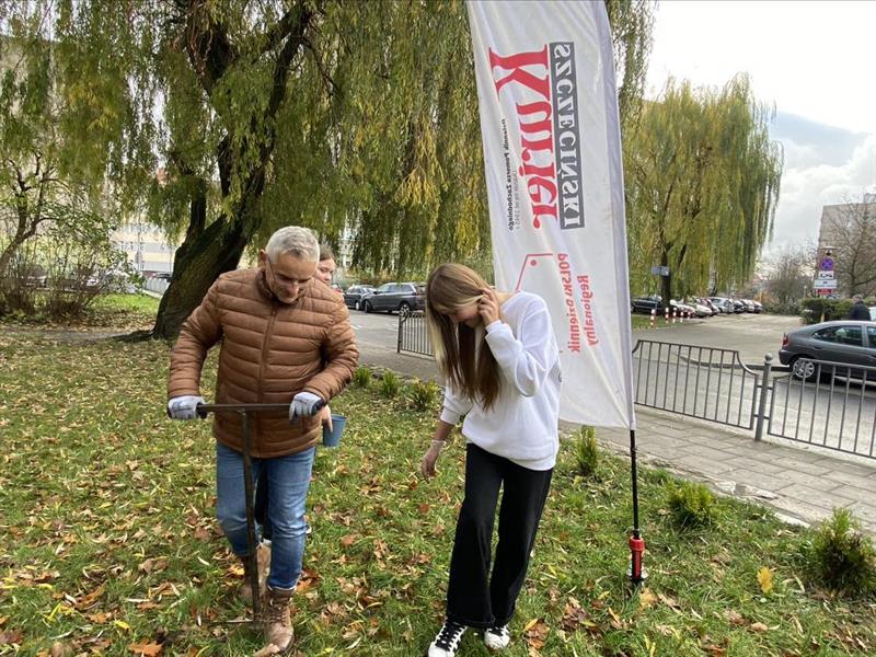 - Moi uczniowie w „Krokusowej rewolucji" wzięli udział po raz pierwszy. Podczas gdy ja, bodaj po raz szósty - mówiła p. Jolanta, nauczycielka biologii. - Za każdym razem z przyjemnością obserwując, jak chętnie młodzież angażuje się w tego rodzaju społeczne działanie. Łączą przyjemne z pożytecznym, bo ukwiecają nie tylko otoczenie swojej szkoły, ale również wpływają na estetykę jej sąsiedztwa. Poza tym, gdy kwiaty wybuchają kolorami na wiosnę, to wszyscy z naszej żmudnej jesiennej pracy mamy wielką satysfakcję.