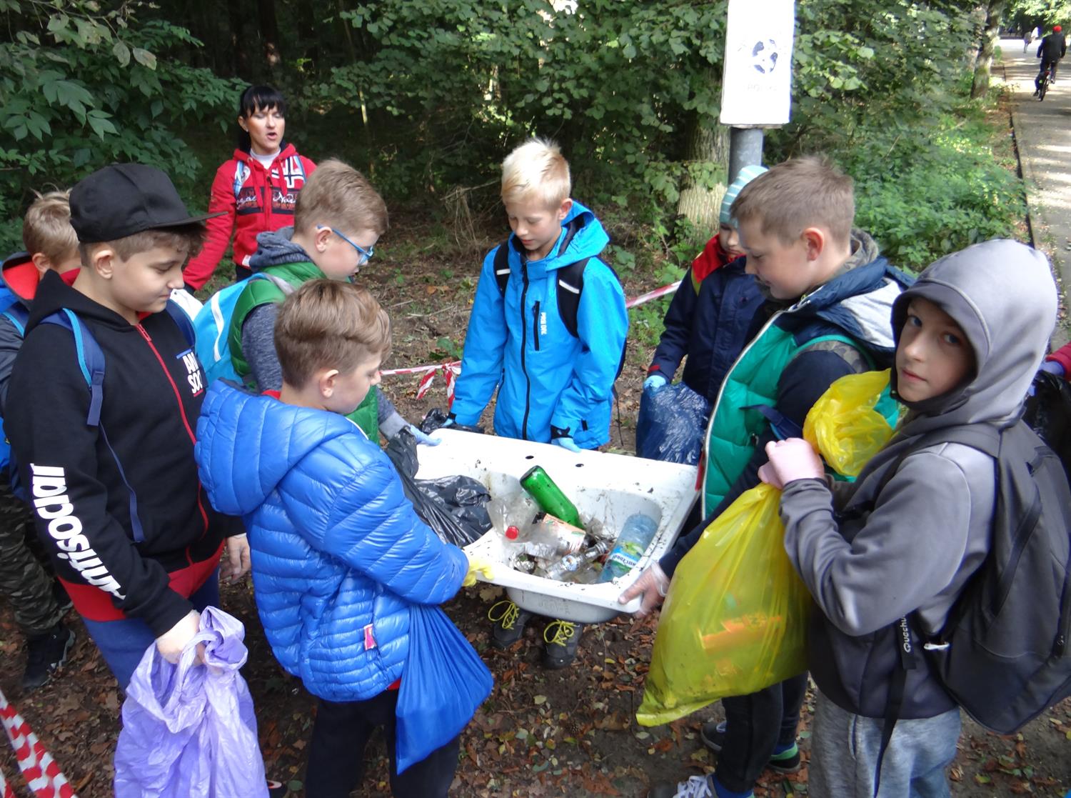 Rafał z kolegami właśnie niosą dwukomorowy żeliwny zlew. Przy nich Julek targa wór pełen butelek po piwie z dodatkiem niemal kilograma kapsli. Alicja z Martyną uzbierały kilkadziesiąt plastikowych sztućców, talerzy i innych piknikowych odpadów. Wszystko to „skarby" z rejonu szczecińskiej Arkonki, gdzie uczniowie ze Szkół Podstawowych nr 7 i 68 zainaugurowali pierwszy dzień „Jesiennych porządków".