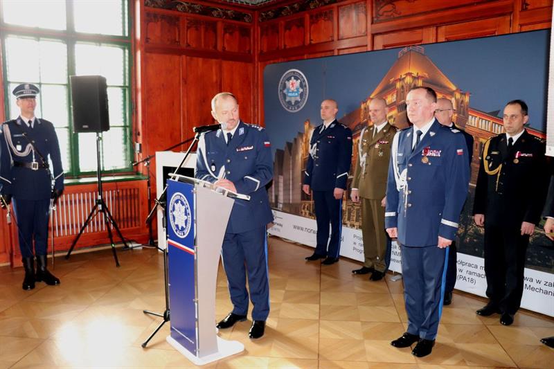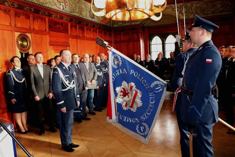 Zgodnie z policyjnym ceremoniałem podczas poniedziałkowej uroczystości odczytany został rozkaz pełniącego obowiązki Komendanta Głównego Policji insp. Marka Boronia o powierzeniu obowiązków na stanowisku Komendanta Wojewódzkiego Policji w Szczecinie inspektorowi Ryszardowi Ganowi.