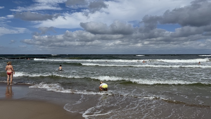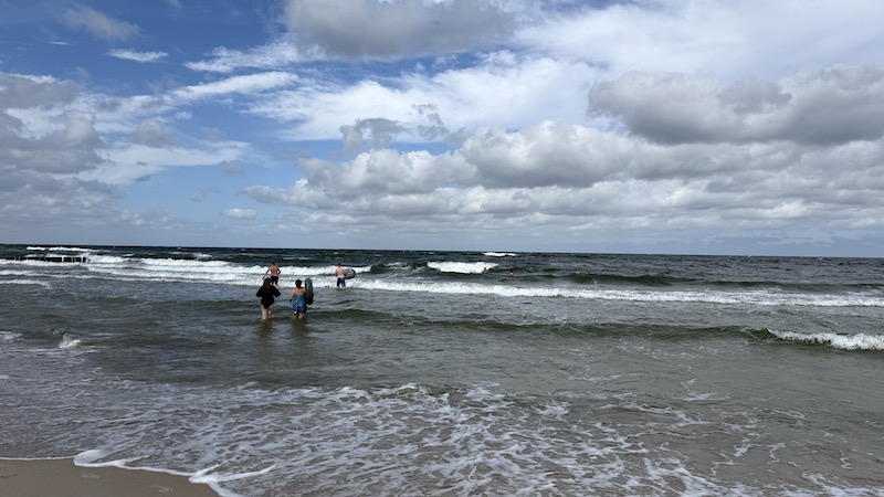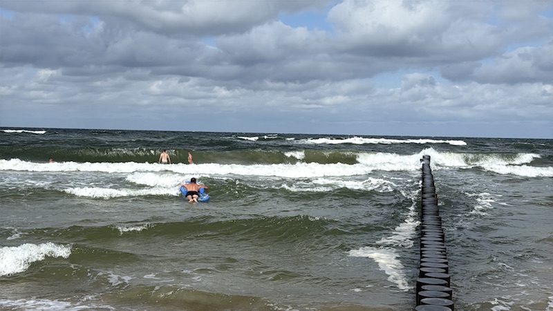 znakomita rozrywka! Tylko z głową .Duża fala na płyciznach to niepowtarzalna atrakcja na lata. Groźniejsza jest tak zwana fala zabierająca ! Chcesz do brzegu , a tu nie tak łatwo! Czasami trzeba było wysztrandować bezpiecznie gdzieś 500 m od miejsca gdzie się uprzednio wchodziło do wody ! Woda jest zdradliwa . No i nie po pijaku, bo to najkrótsza droga do porażki! Jak już trudno jest, to zawołać kogoś! Sama asysta już uspokaja! Topią się Ci najlepiej pływający, bo są za pyszałkowaci !