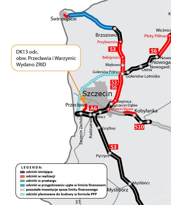 Wojewoda zachodniopomorski wydał decyzję o zezwoleniu na realizację inwestycji drogowej (ZRID) dla budowy obwodnicy Przecławia i Warzymic w ciągu drogi krajowej nr 13.