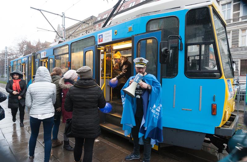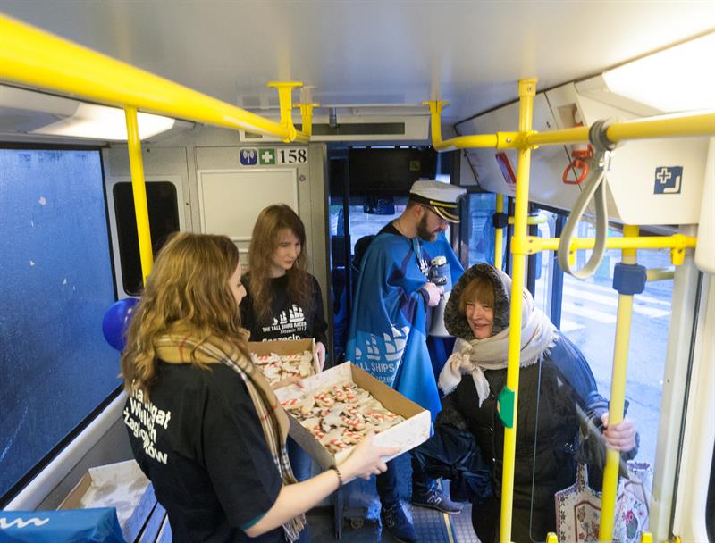 Tramwaj-żaglowiec wystartował w czwartek o godz. 7 z przystanku przy pl. Szarych Szeregów, gdzie na podróżnych czekały marynarskie słodkości i kalendarze.