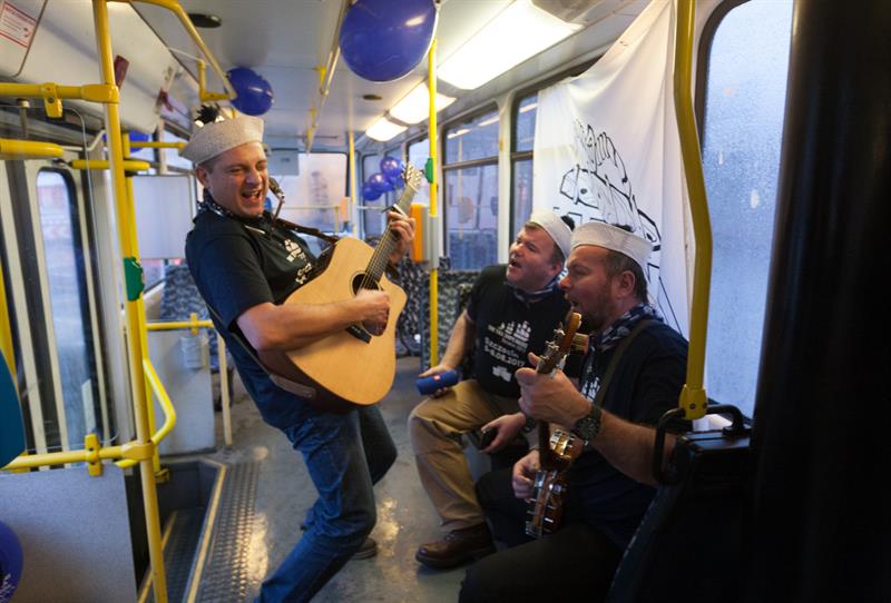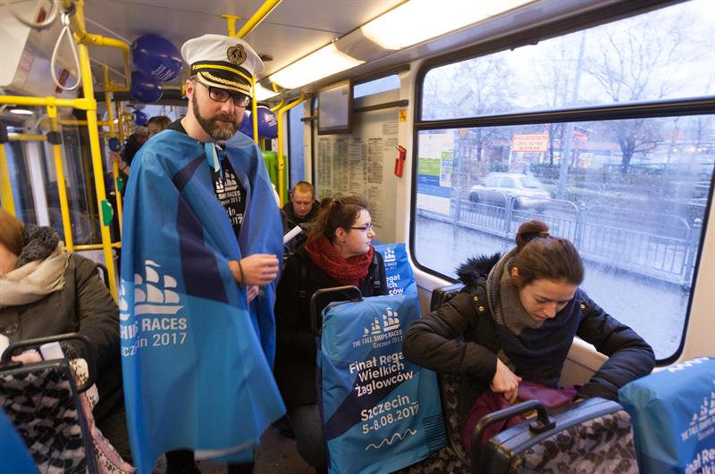 Z kolei w specjalnym, regatowym tramwaju pasażerowie mogli posłuchać szant wykonywanych przez grupę Majtki Bosmana. Linia przejechała na dworzec Niebuszewo, aby zawrócić i pojechać przez centrum miasta i „zacumować" na Pomorzanach. Osoby, które zechciały dotrzeć nietypowym pojazdem do pracy lub szkoły, nie musiały kasować biletów.