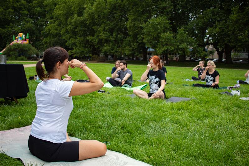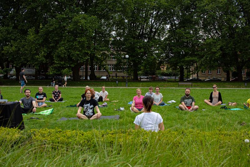 W zajęciach, które rozpoczęły się o godzinie 12.30 uczestniczyło kilkanaście osób. Ćwiczenia jogi poprowadziła Agata Surdy ze Strefy Jogi. To certyfikowana nauczycielka Jogi Sivananda, jogi klasycznej, jogi integralnej. Od ponad 15 lat praktykuje jogę, a od 10 prowadzi zajęcia jako nauczyciel. Wykonywane przez uczestników ćwiczenia były proste i relaksujące. ©℗