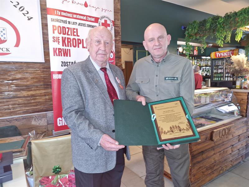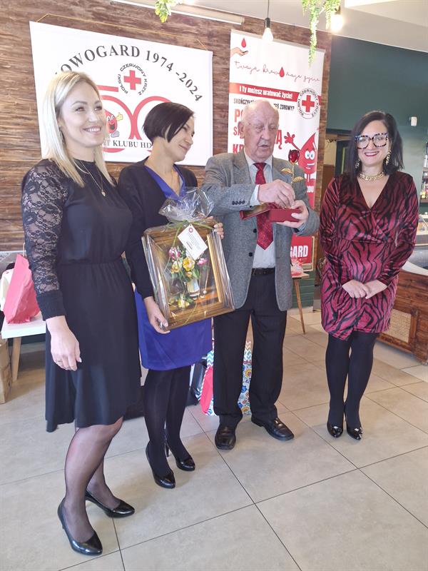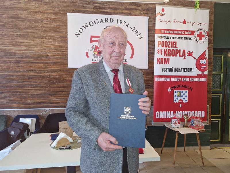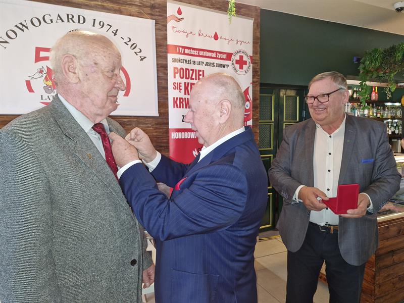 Podczas spotkania prezes Zdzisław Szmit został udekorowany Złotą Odznaką Honorową Gryfa Zachodniopomorskiego. Została też odczytana laudacja na jego cześć, którą wygłosił były radny, burmistrz gminy Nowogard Kazimierz Ziemba. Były też wyróżnienia i upominki dla tych, którzy w sposób szczególny w kończącym się roku 2024, zaangażowali się w działalność Klubu Honorowych Dawców Krwi w Nowogardzie. Uroczystość zwieńczył okolicznościowy tort. ©℗