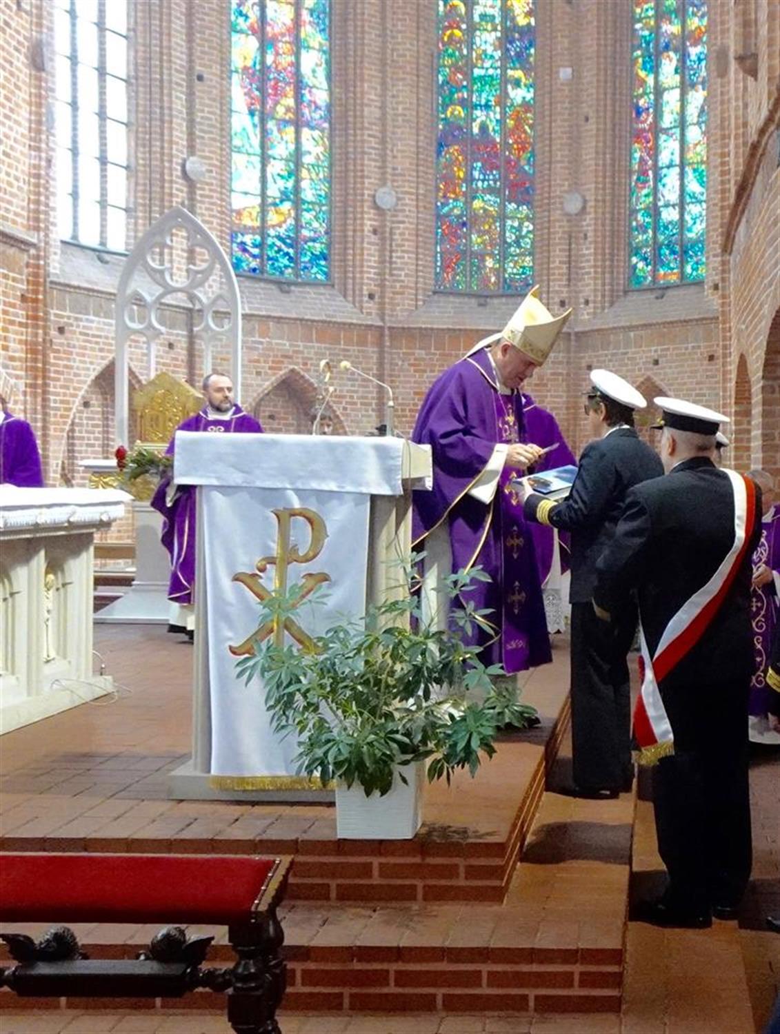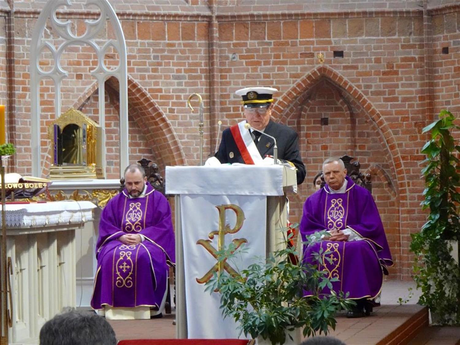 Ks. Stanisław Flis dziękował zgromadzonym, pocztom sztandarowym szczecińskiego Stowarzyszenia Starszych Oficerów Mechaników Morskich i Stella Maris oraz przedstawicielom innych środowisk morskich, w tym Szczecińskiemu Klubowi Kapitanów Żeglugi Wielkiej. Obecna była prorektor ds. kształcenia Politechniki Morskiej dr inż. Agnieszka Deja, a także poseł Zbigniew Bogucki.