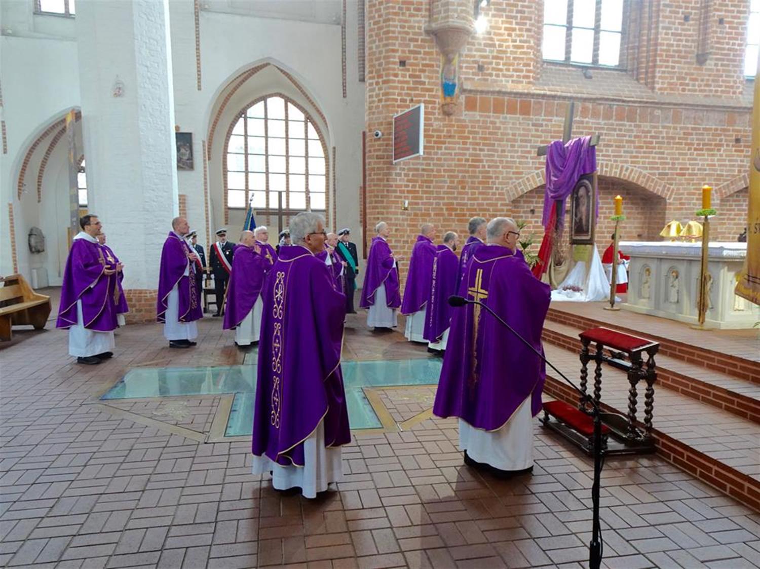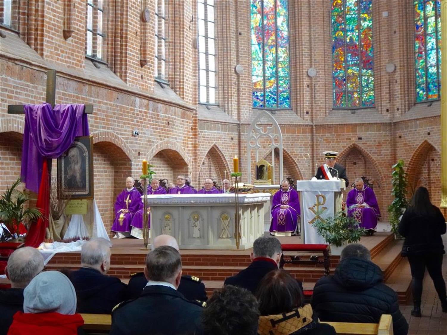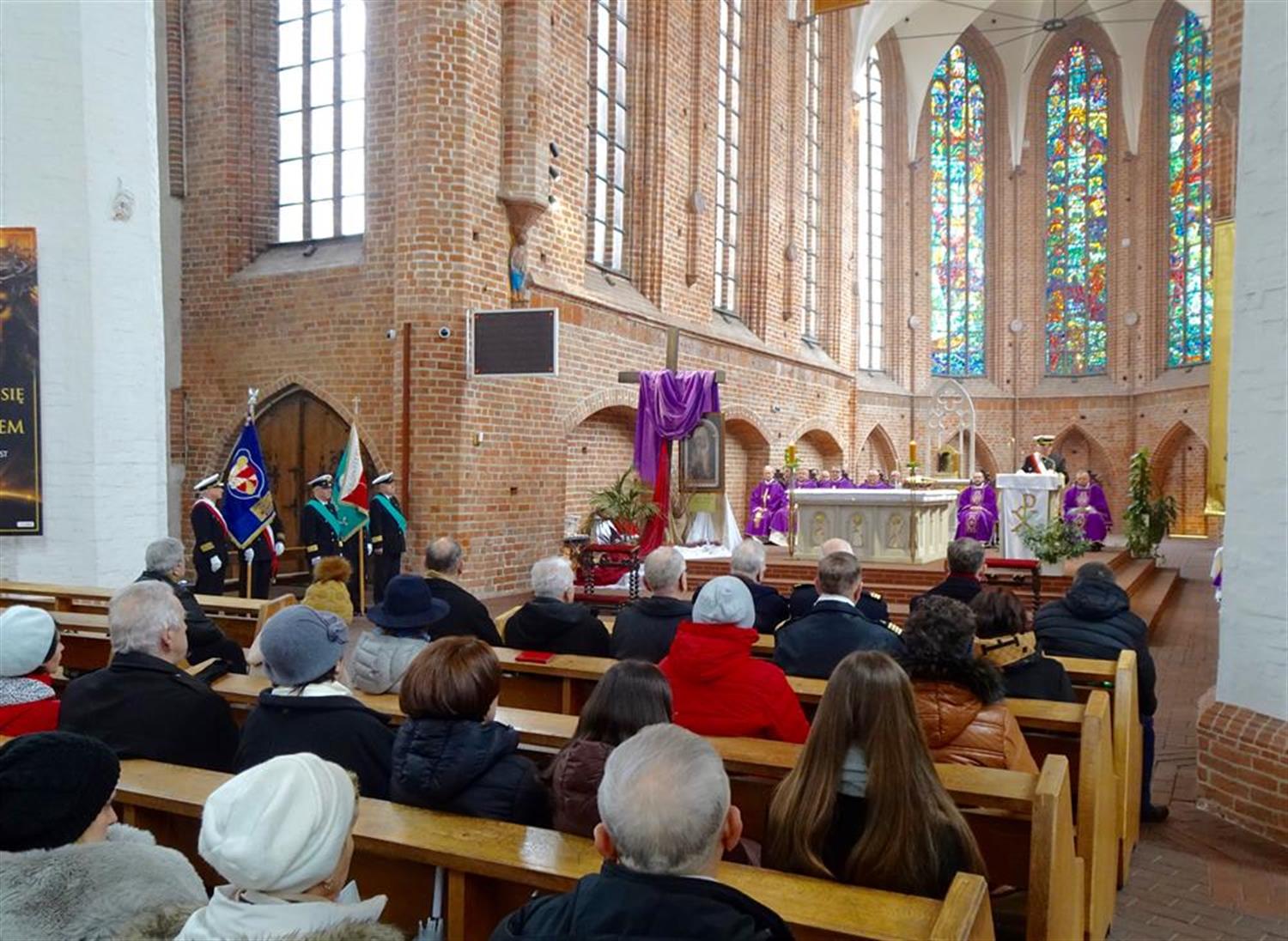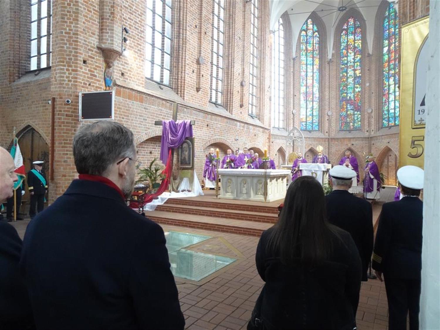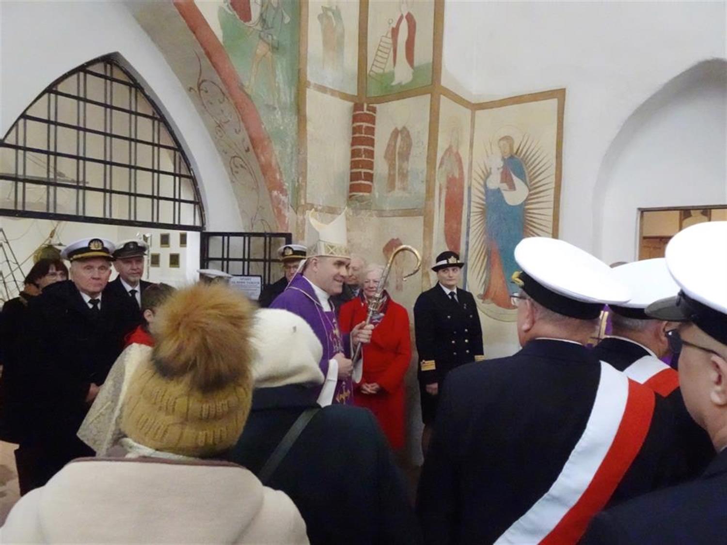 – Dzisiaj szczęśliwie gromadzimy się w ten jubileusz także w grupie osób stanowiących Duszpasterstwo Ludzi Morza – zauważył biskup. – Jakżeby inaczej, to przecież szczególne miejsce związane z morzem, nie tylko z Bałtykiem. Kaplica Morska uwrażliwia nas na los marynarzy, także przywołując dramatyczne karty z historii ludzi morza, związane z morskimi katastrofami.