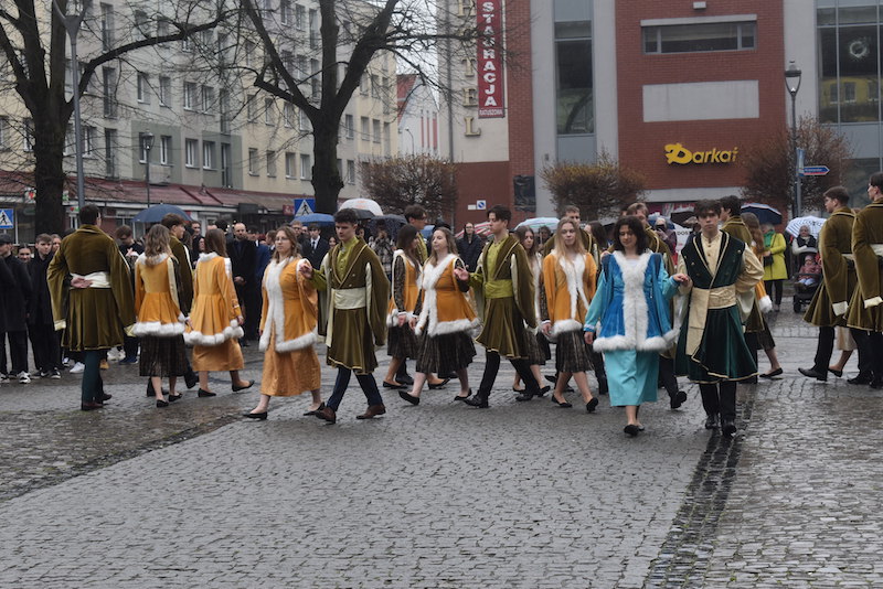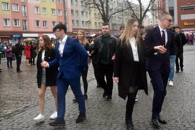Barwny korowód wyruszył sprzed budynku Collegium Balticum - Akademii Nauk Stosowanych, przeszedł tanecznym krokiem ulicami Krzywoustego i Grodzką na plac przed ratuszem. W tym roku mieszkańcy mogli podziwiać wykonanie tego staropolskiego tańca przez ubranych w tradycyjne stroje maturzystów z I Liceum Ogólnokształcącego, a także uczniów Zespołu Szkół nr 2, Zespołu Szkół nr 1 i po raz pierwszy Zespołu Szkół nr 5.