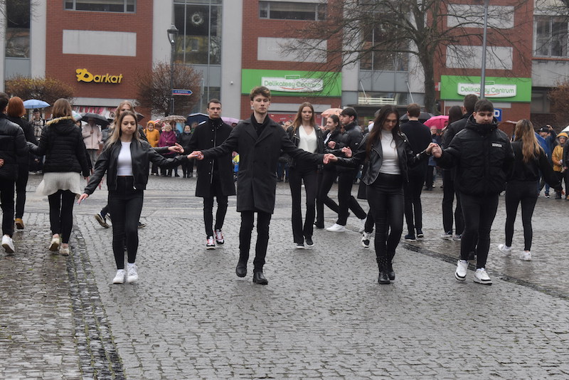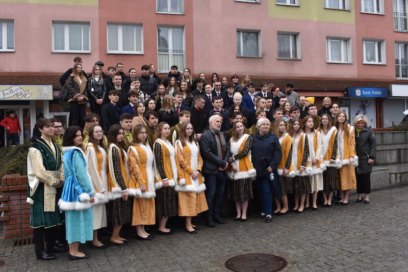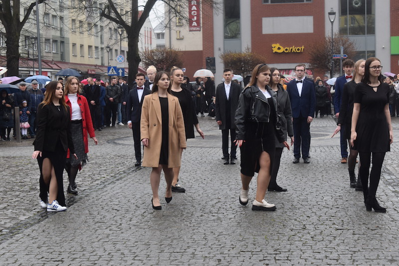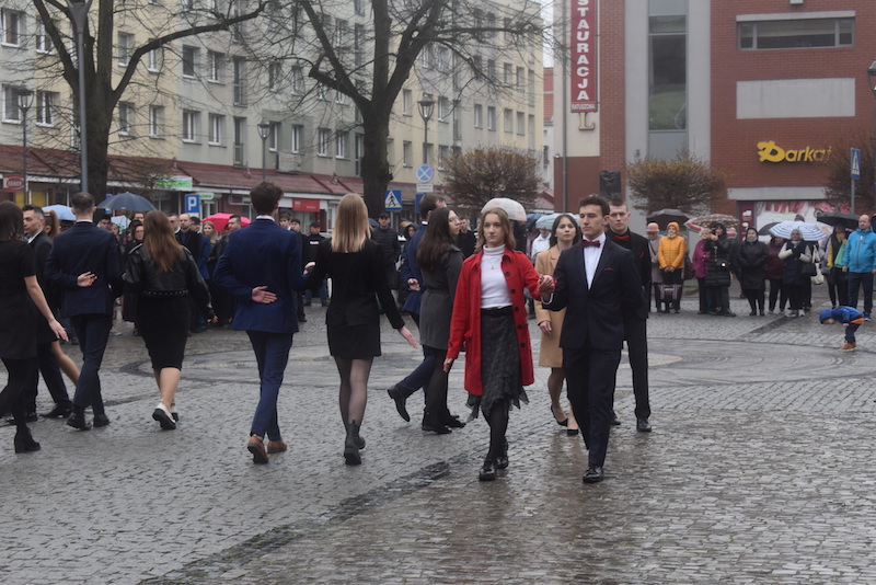 W samo południe na Rynku Staromiejskim w Stargardzie rozpoczęły się w miniony piątek prezentacje poloneza w wykonaniu wydelegowanych maturzystów ze stargardzkich szkół ponadpodstawowych.