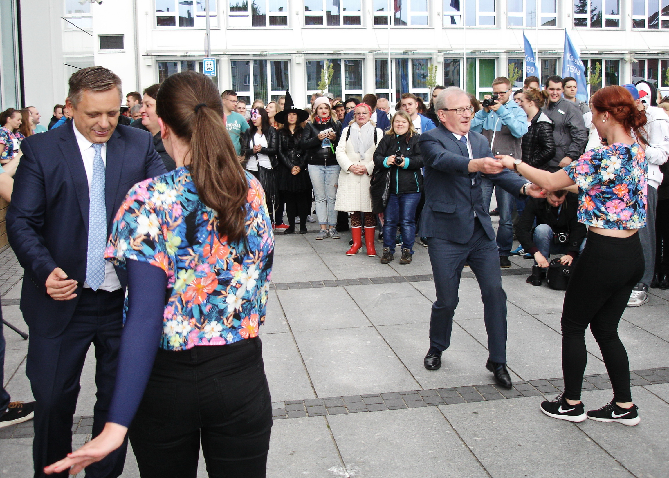 Zebrani przyglądali się tradycyjnemu pojedynkowi włodarzy ratusza i uczelni, który rozpoczęły popisy obu rywali (na zdjęciu) w parach z członkiniami Akademickiego Klubu Tańca. Padł remis, ale w kolejnych konkurencjach, np. w oszczędnym obieraniu jabłek, szala tradycji przechyliła się na rzecz uczestników XXXVIII Tygodnia Kultury Studenckiej. Imprezy potrwają do 22 bm. ©℗