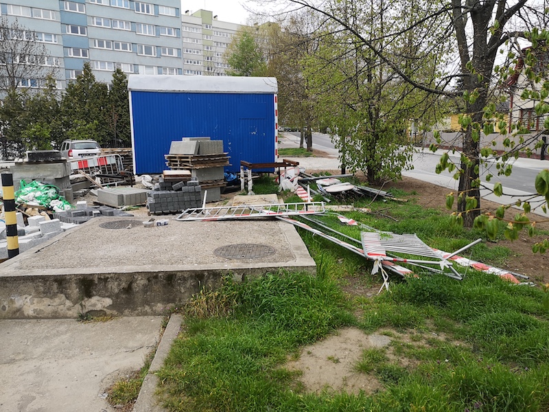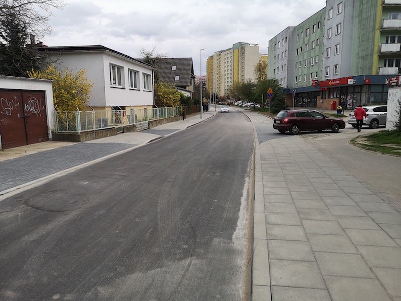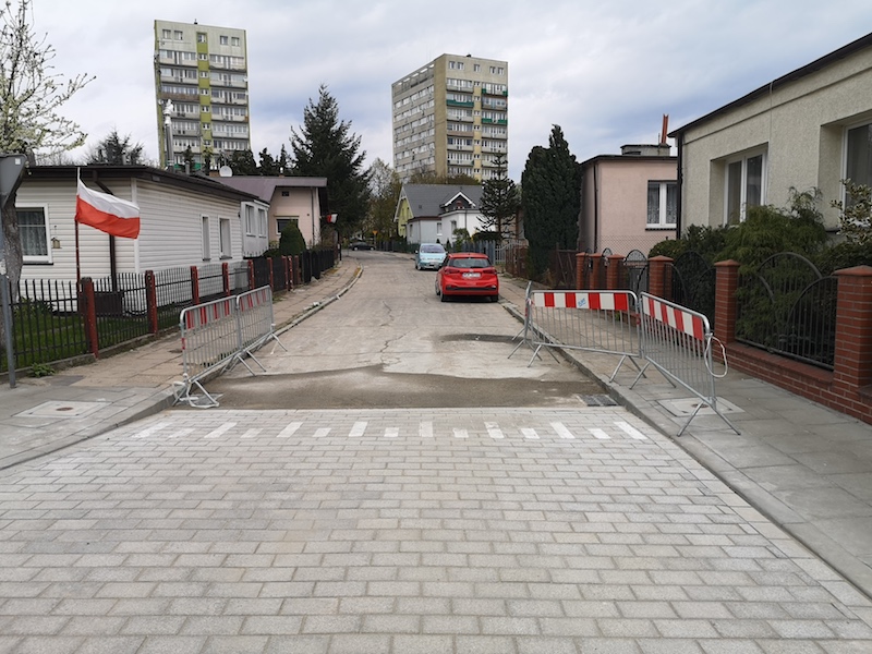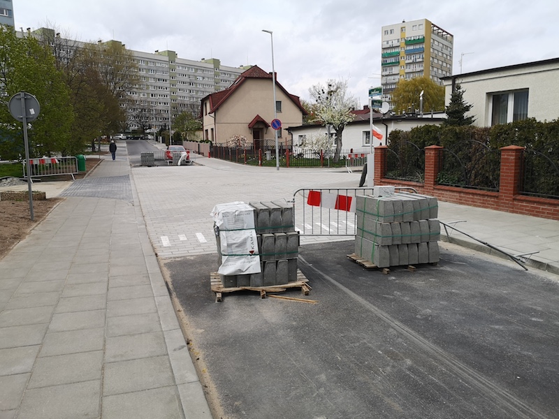Ulica nadal niby jest zamknięta dla ruchu - o czym informują znaki „ślepa”, ale przejechać nią można bez większego problemu. Jedynie na skrzyżowaniu z ul. Kłosową stoją na jezdni materiały budowlane i wywrócone barierki. Kierowcy objeżdżają tę przeszkodę wokół sklepu „Tesco”. Wielu dziwi się, że od wielu dni drogowcy, których już nie ma, nie wywiozą tych materiałów i nie udrożnią zamkniętej od roku ulicy. Wykonawca ma jednak czas do końca czerwca, ale przecież wywiezienie niepotrzebnych materiałów, wkopanie leżących na ziemi słupków z nawami ulicy i wywiezienie leżącego na poboczach gruzu to zadanie na kilka godzin.